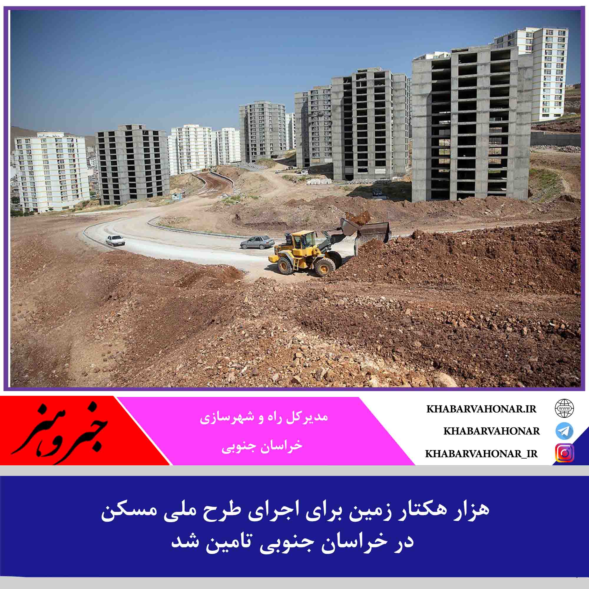 مدیرکل راه و شهرسازی خراسان جنوبی از تامین هزار هکتار زمین برای ساخت طرح نهضت ملی مسکن در این استان خبر داد و گفت: سهمیه خراسان جنوبی ساخت ۴۰ هزار واحد مسکونی در قالب طرح نهضت ملی مسکن در چهار سال آینده است