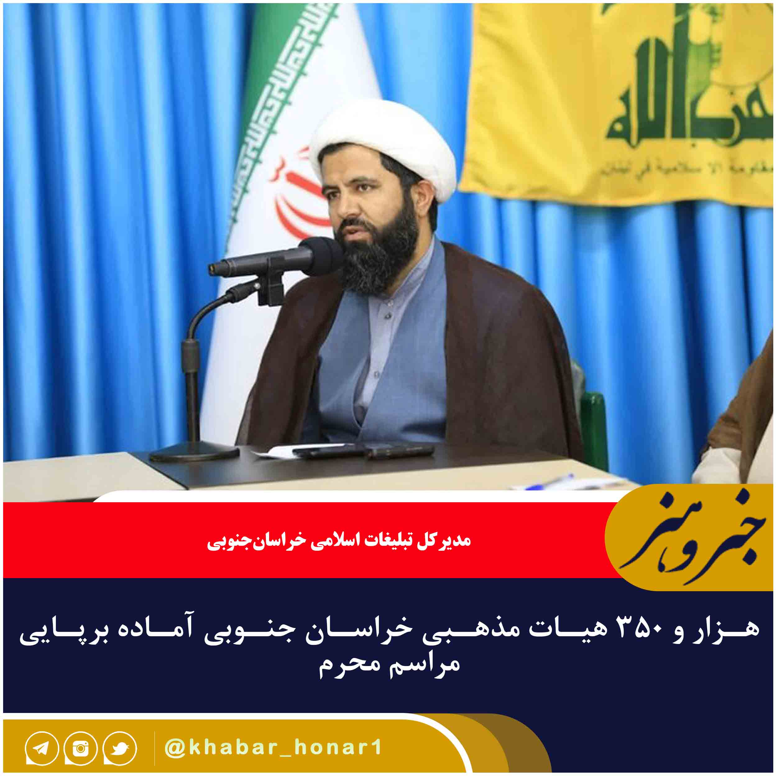 -مدیرکل تبلیغات اسلامی خراسانجنوبی گفت:هزار و ۳۵۰ هیات مذهبی استان آماده برپایی مراسم محرم سال جاری هستند.