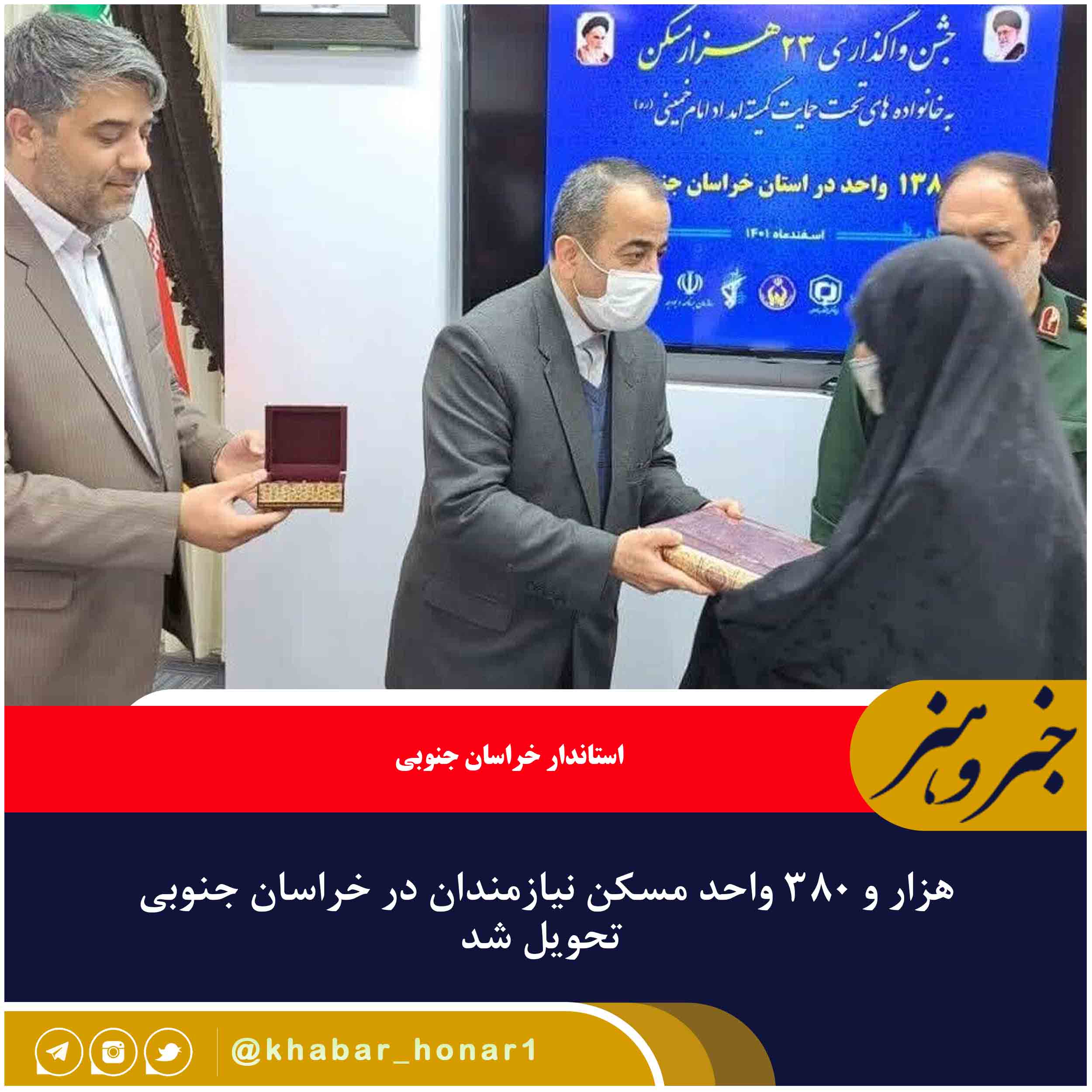 در این مراسم با حضور جمعی از مسوولان استان به طور نمادین کلید سه واحد مسکونی به مددجویان تحت حمایت کمیته امداد امام خمینی (ره) به نمایندگی از هزار و ۳۸۰ واحد در استان خراسان جنوبی تحویل شد.