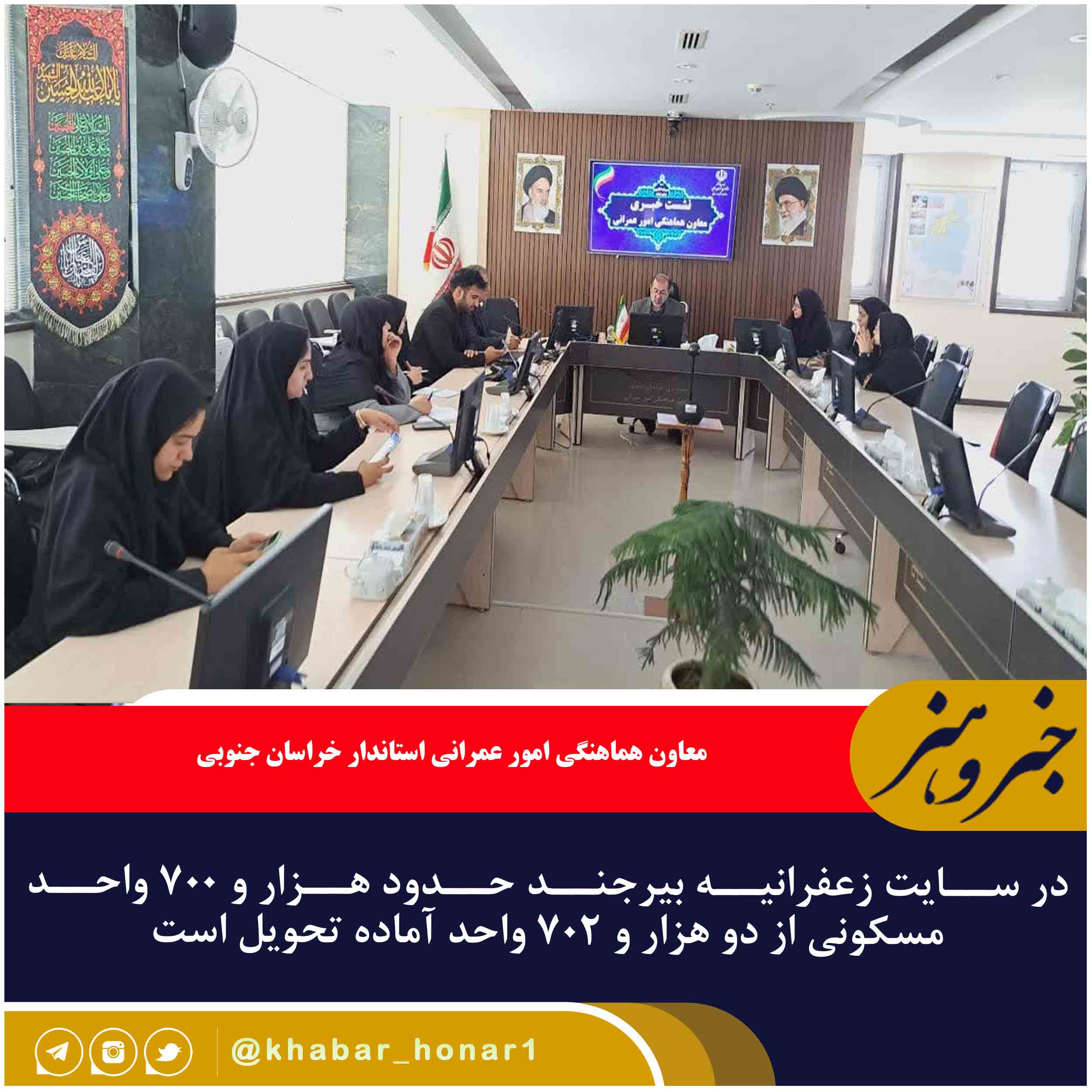 معاون هماهنگی امور عمرانی استاندار خراسان جنوبی گفت: در سایت زعفرانیه بیرجند حدود هزار و ۷۰۰ واحد مسکونی از دو هزار و ۷۰۲ واحد آماده تحویل است.