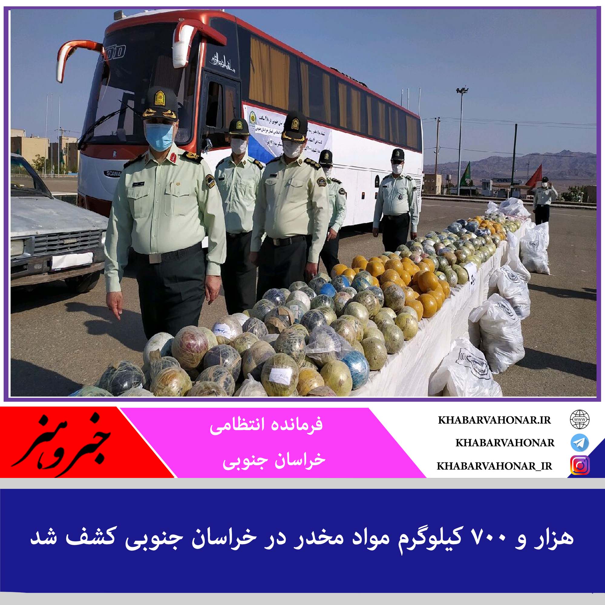فرمانده انتظامی خراسان جنوبی گفت: یک هزار و ۷۰۰ کیلوگرم مواد مخدر در ۲ روز تعطیلات پایان هفته اخیر در استان کشف شد.
