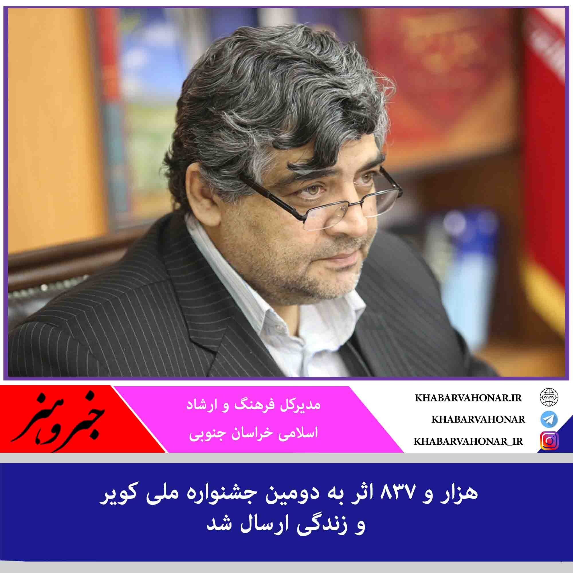 مدیرکل فرهنگ و ارشاد اسلامی خراسان جنوبی گفت: یک هزار و ۸۳۷ اثر از هنرمندان عکاس و فیلمساز به جشنواره ملی عکس و فیلم مستند «کویر و زندگی» ارسال شده است.
