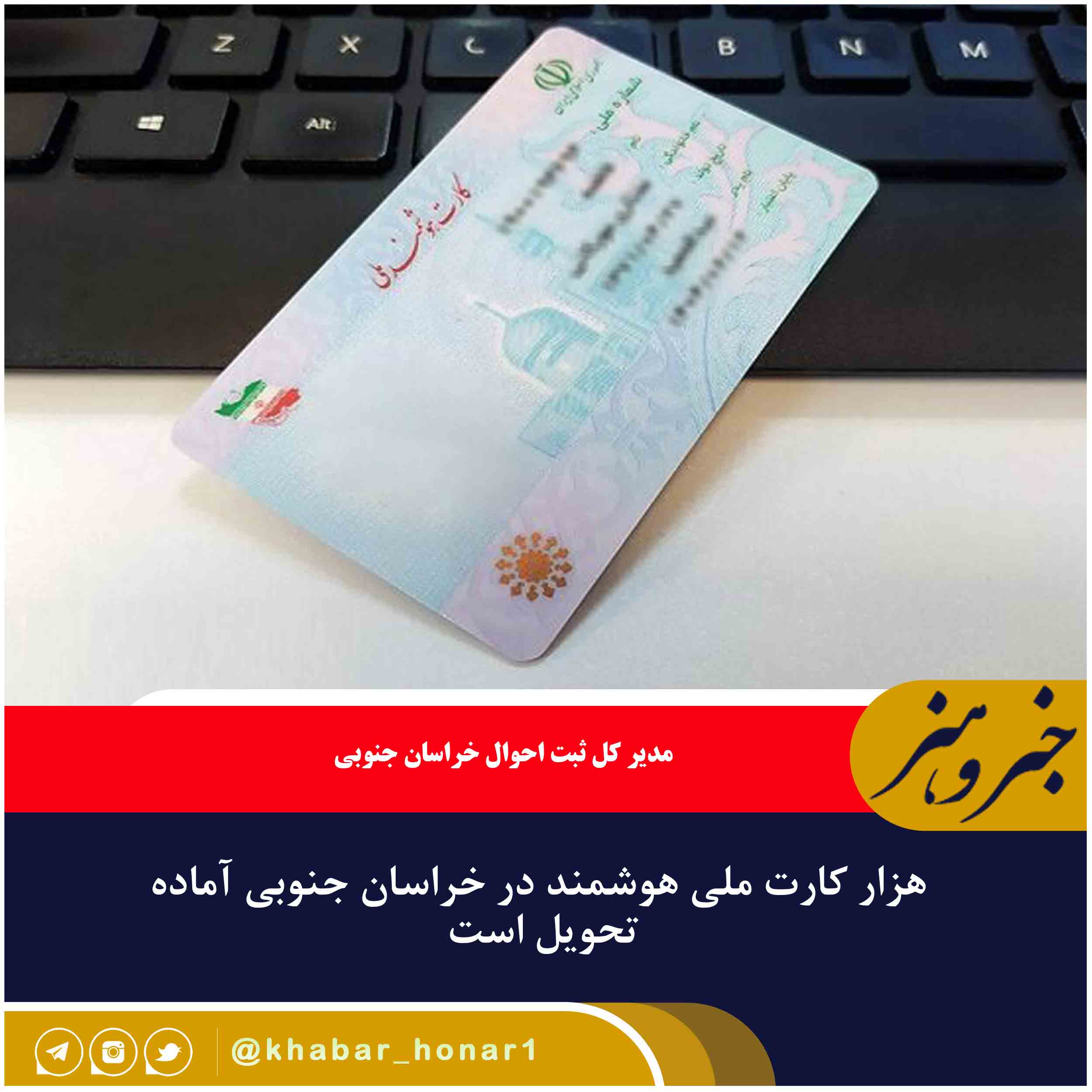 مدیر کل ثبت احوال خراسان جنوبی گفت: بیش از ۵ هزار کارت هوشمند ملی آماده تحویل است و از هم استانی های گرامی خواست می کنیم نسبت به تحویل کارت ملی خود اقدام کنند.