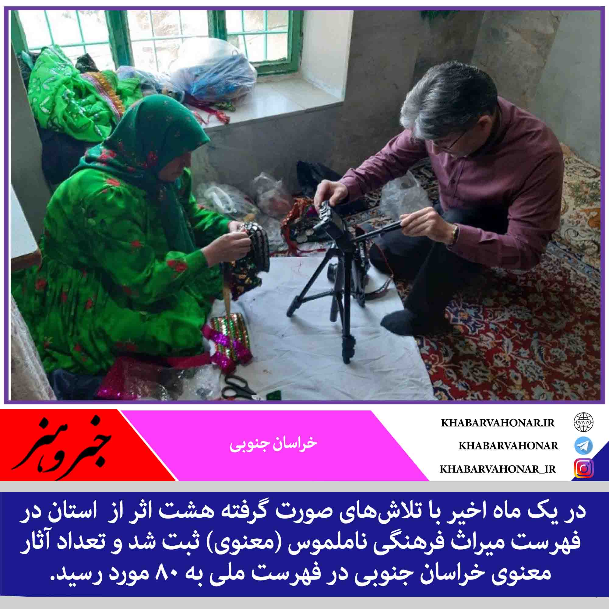 مسوول واحد پژوهش و مطالعات اداره کل میراث فرهنگی، گردشگری و صنایع دستی خراسان جنوبی گفت: در یک ماه اخیر با تلاشهای صورت گرفته هشت اثر از این استان در فهرست میراث فرهنگی ناملموس (معنوی) ثبت شد و تعداد آثار معنوی خراسان جنوبی در فهرست ملی به ۸۰ مورد رسید.