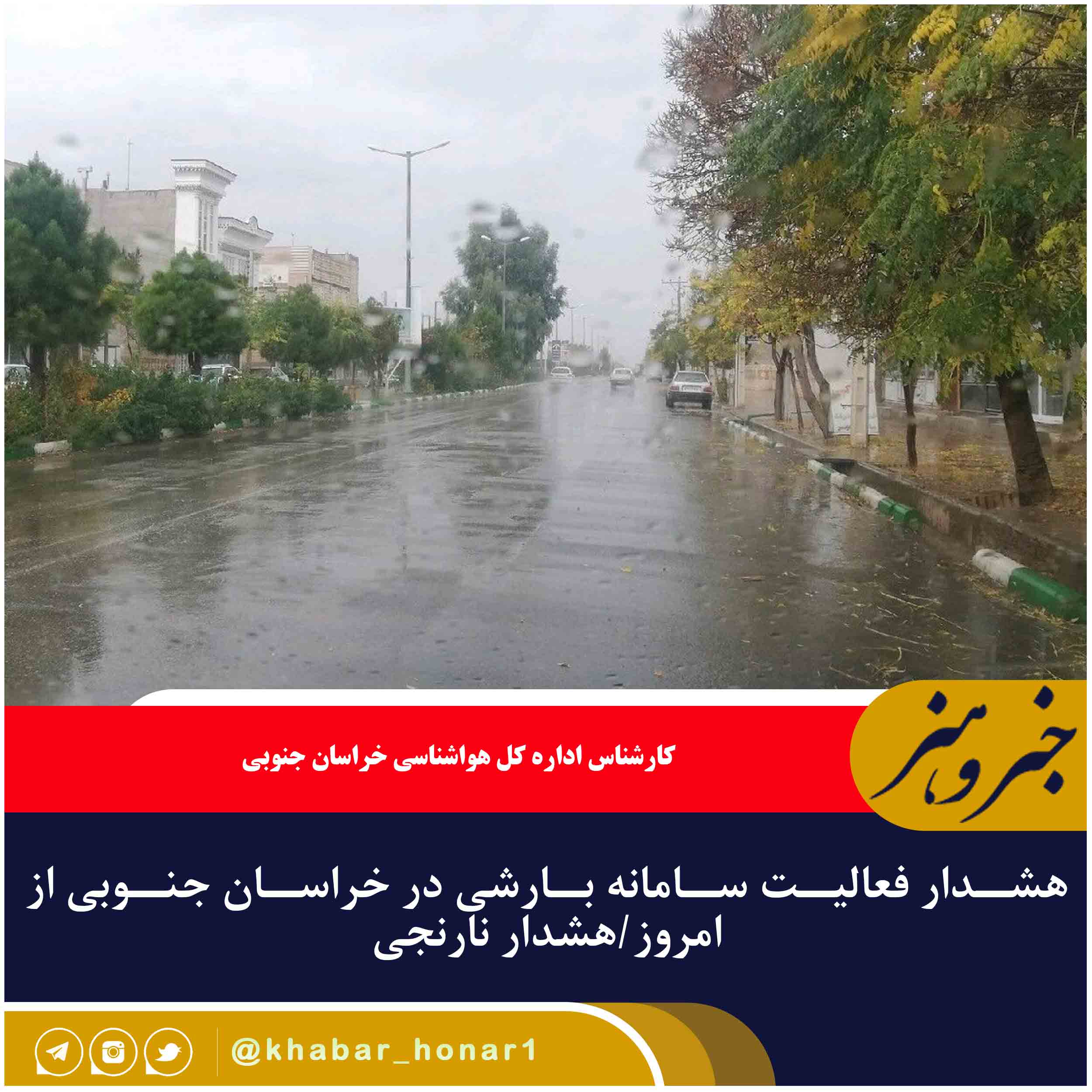 پیش از این اداره کل هواشناسی خراسان جنوبی با توجه به فعالیت سامانه بارشی و رعد و برق شدید از روز پنجشنبه هفته جاری هشدار نارنجی صادر کرد.
