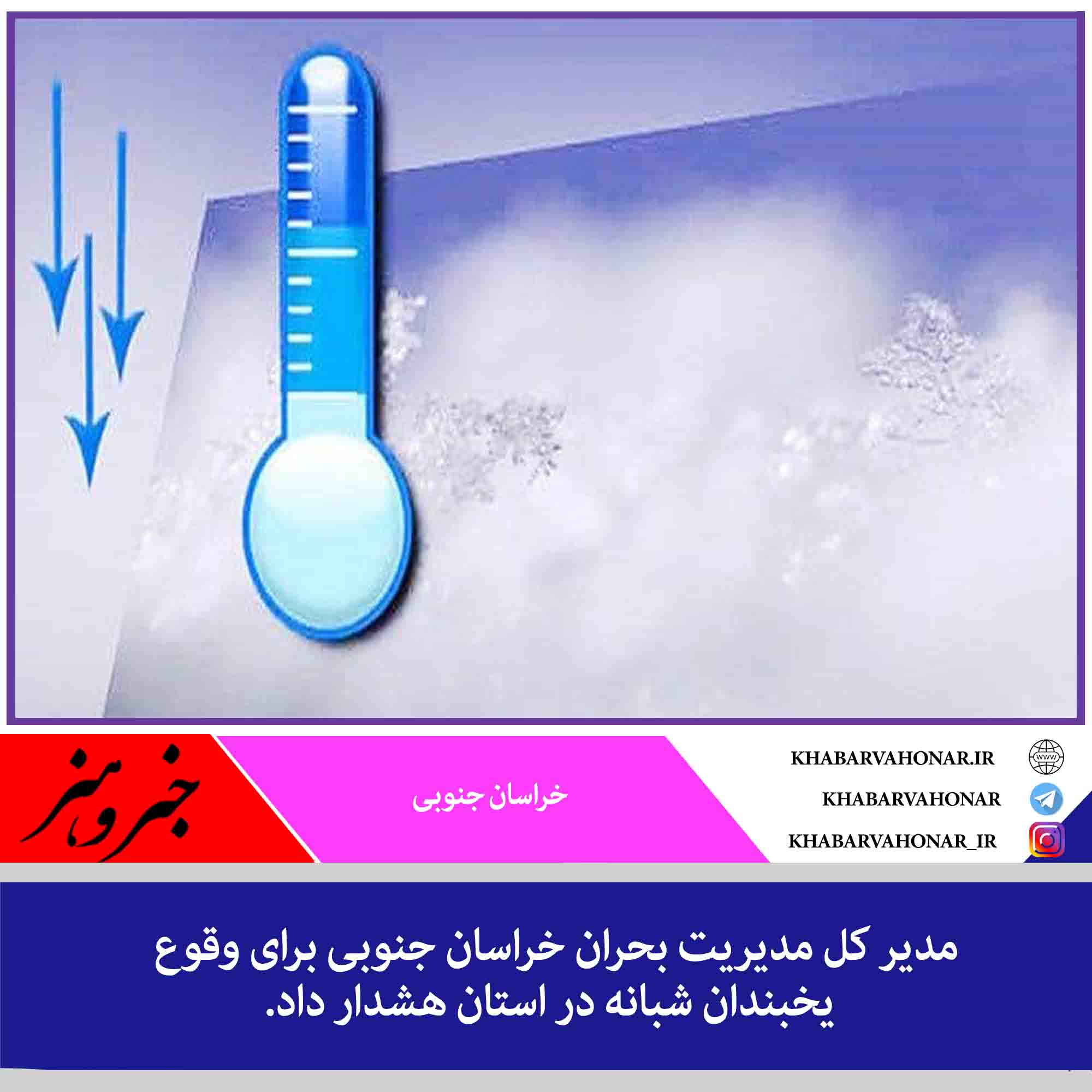 ?مدیر کل مدیریت بحران خراسان جنوبی برای وقوع یخبندان شبانه در استان هشدار داد.