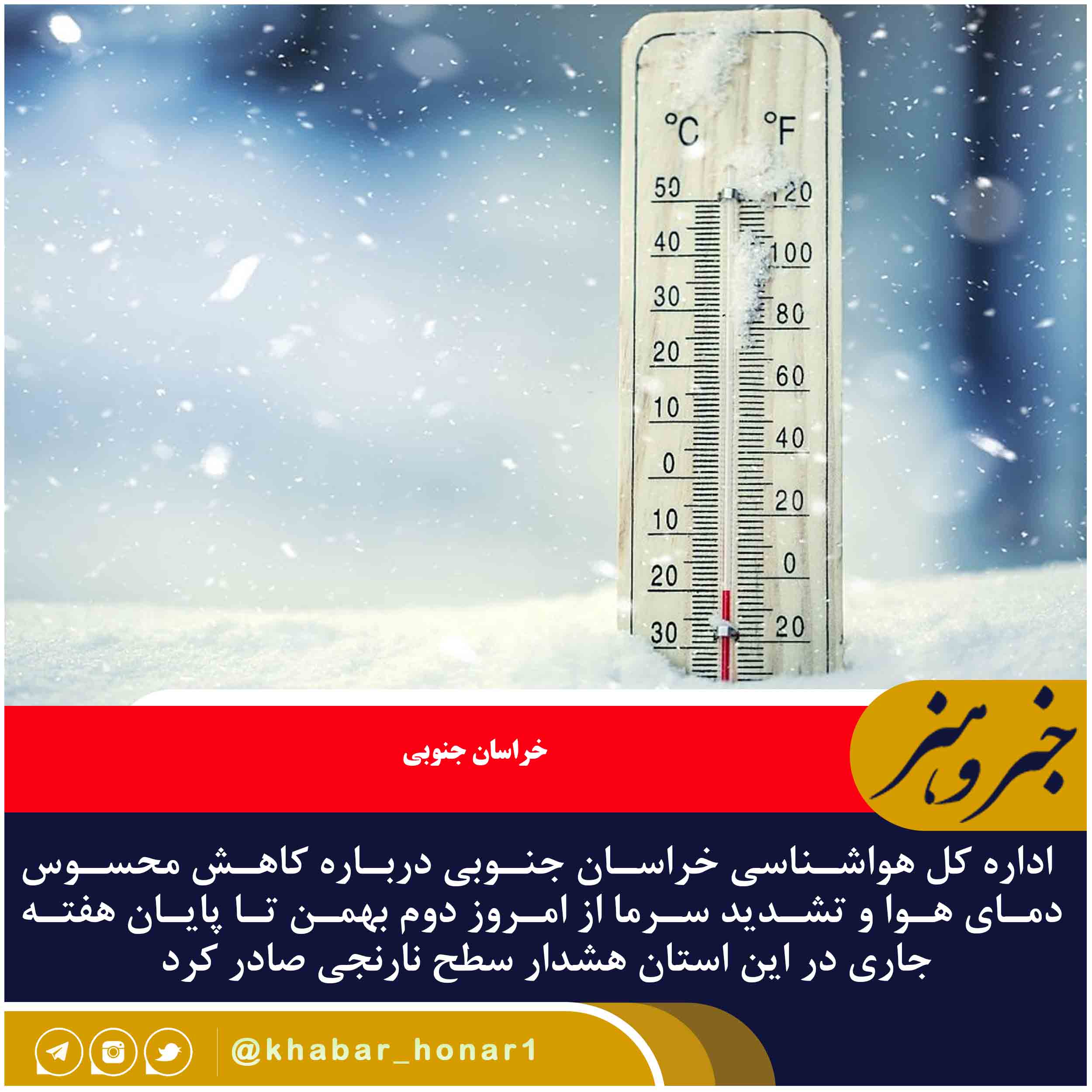اداره کل هواشناسی خراسان جنوبی درباره کاهش محسوس دمای هوا و تشدید سرما از امروز دوم بهمن تا پایان هفته جاری در این استان هشدار سطح نارنجی صادر کرد.