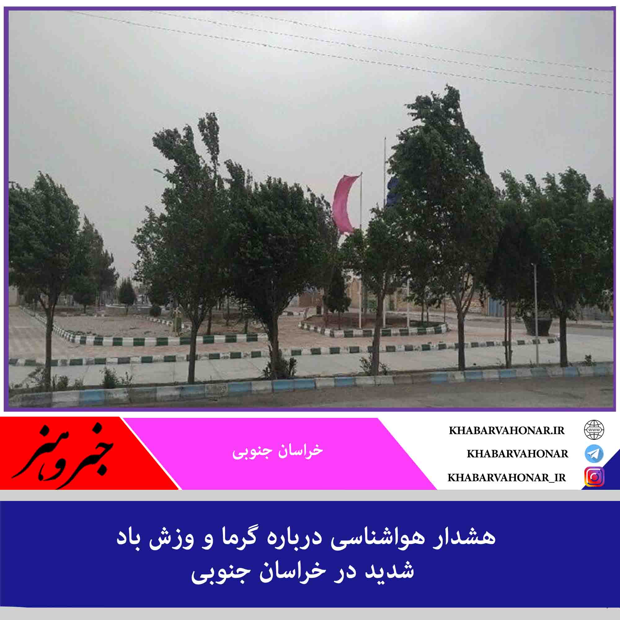 اداره کل هواشناسی خراسان جنوبی درباره وزش باد شدید در برخی مناطق استان و تشدید گرما در هفته آینده هشدار سطح زرد (آگاهی) صادر کرد.