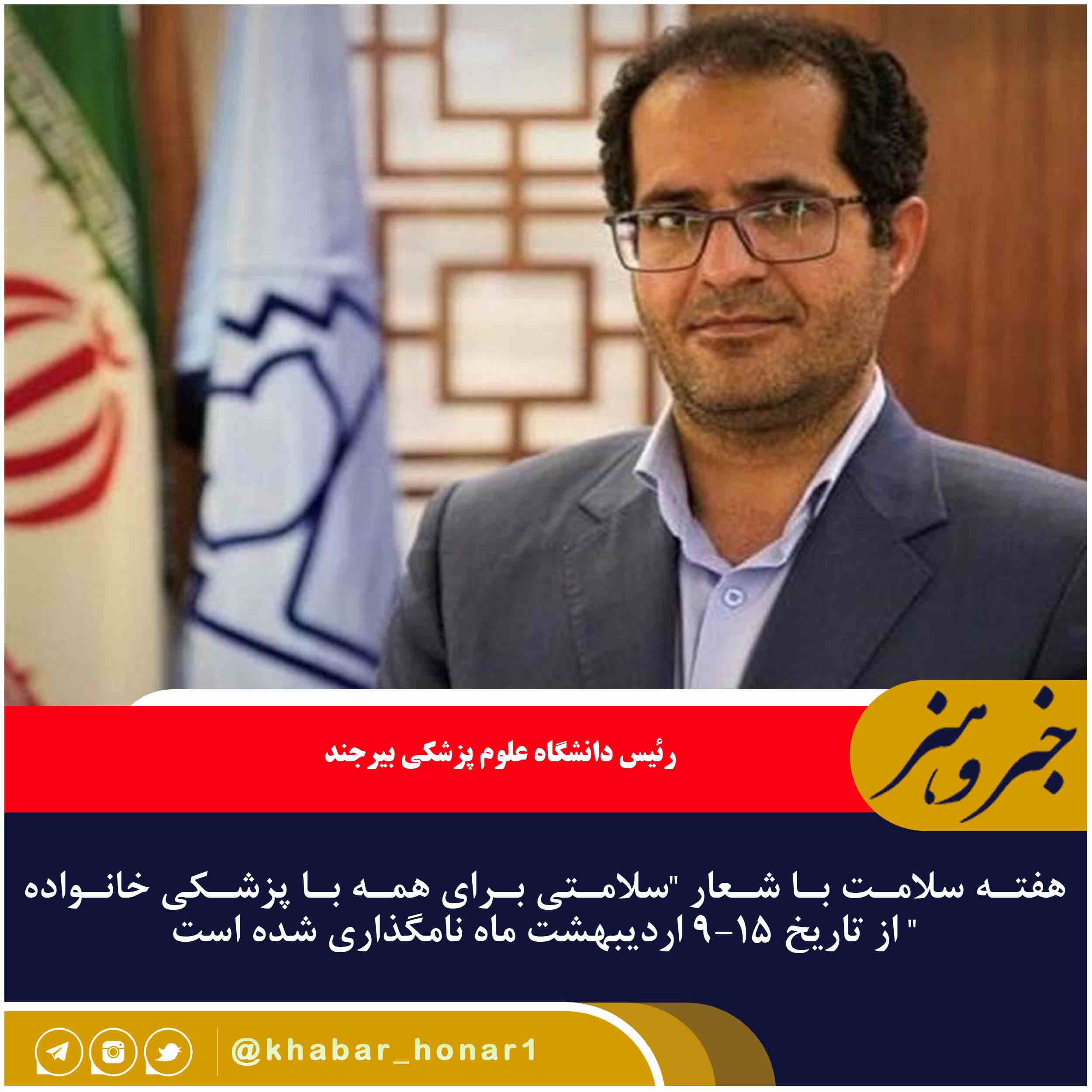 رئیس دانشگاه علوم پزشکی بیرجند در پیامی، ضمن قدردانی از زحمات تلاشگران عرصه سلامت ، آغاز هفته سلامت را تبریک گفت