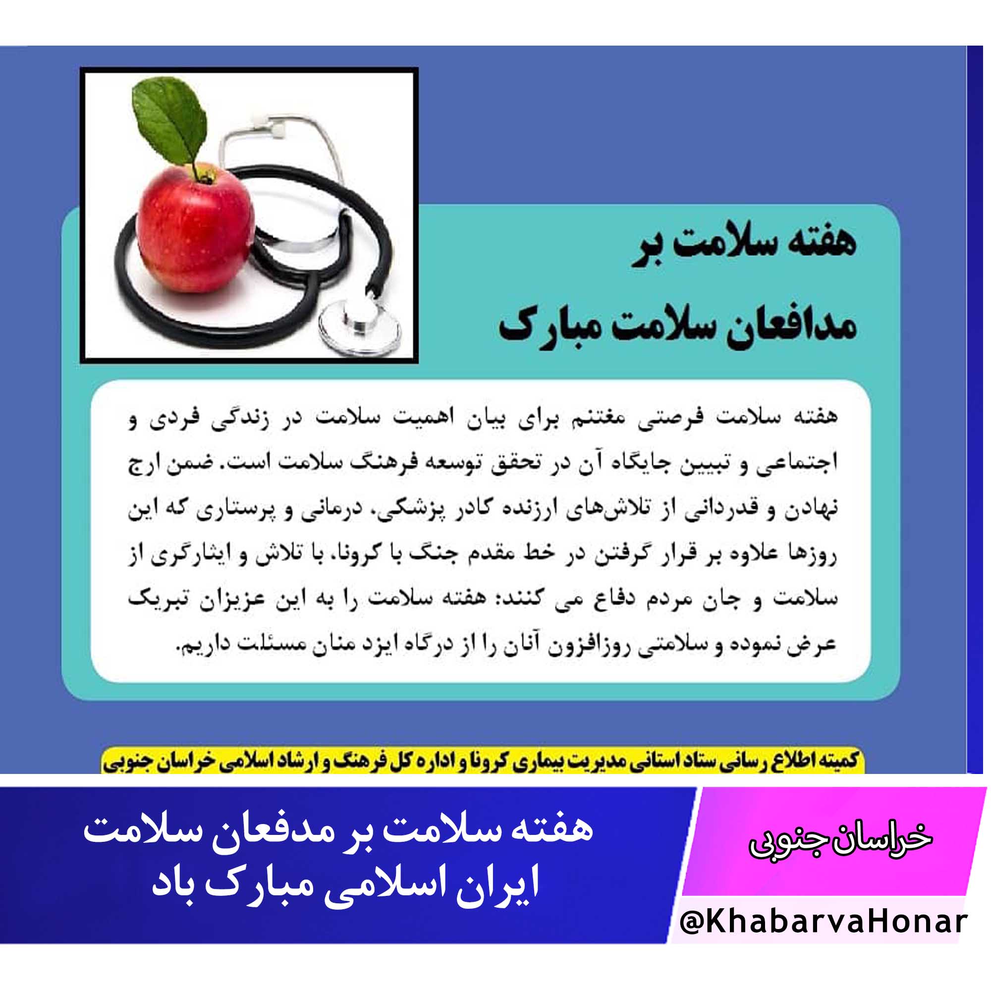 هفته سلامت بر مدفعان سلامت ایران اسلامی مبارک باد