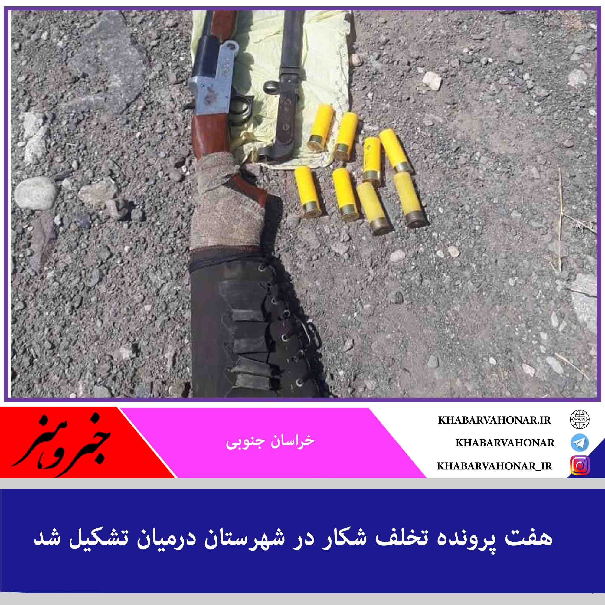 – سرپرست اداره حفاظت محیط زیست شهرستان درمیان گفت: از ابتدای سال جاری تاکنون هفت پرونده تخلف شکار و صید در این شهرستان تشکیل شده است و ۱۲ نفر متخلف به مراجع قضایی معرفی شدند.