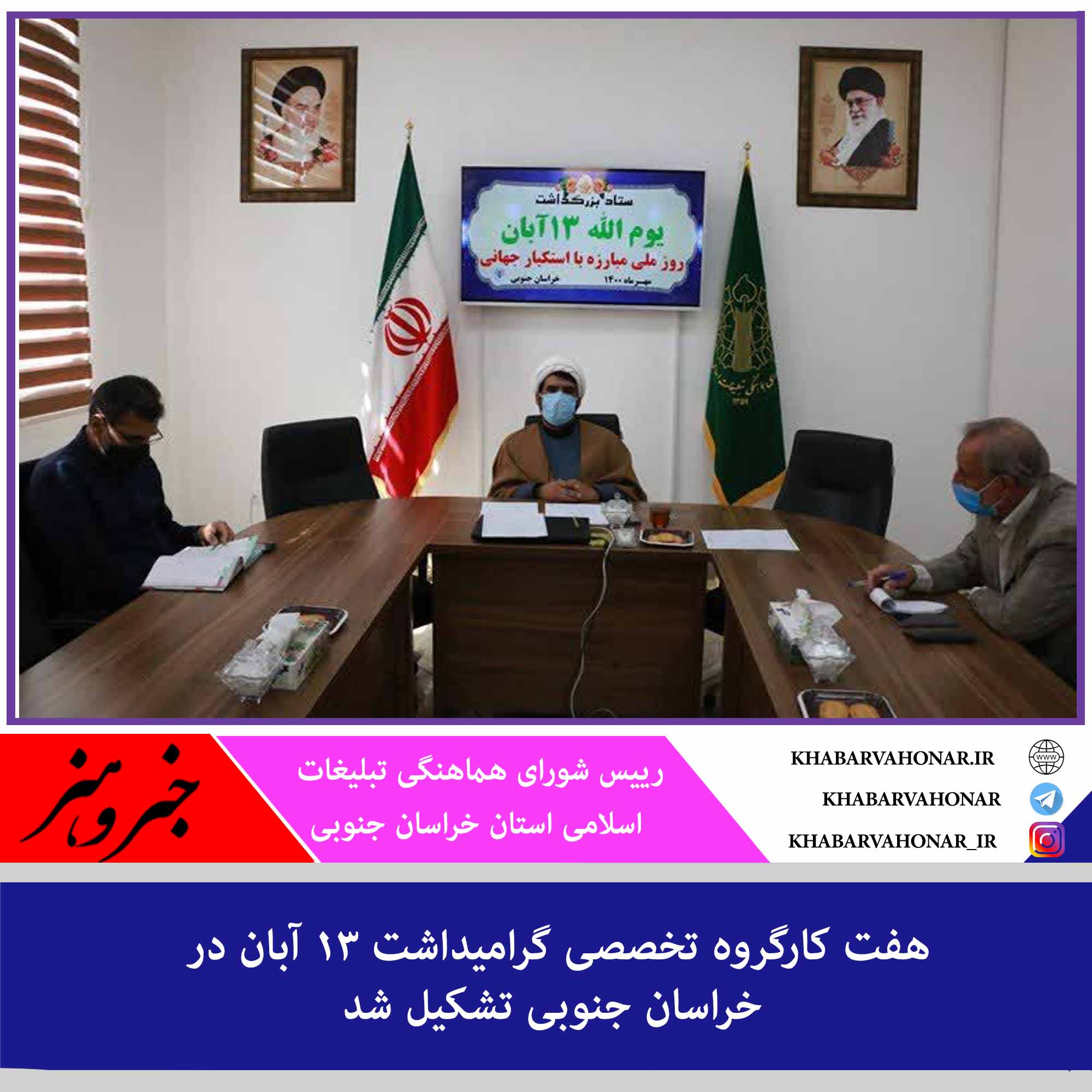 رییس شورای هماهنگی تبلیغات اسلامی استان خراسان جنوبی از تشکیل ستاد استانی بزرگداشت ۱۳ آبان و هفت کارگروه تخصصی برای گرامیداشت شایسته این مناسبت خبر داد.