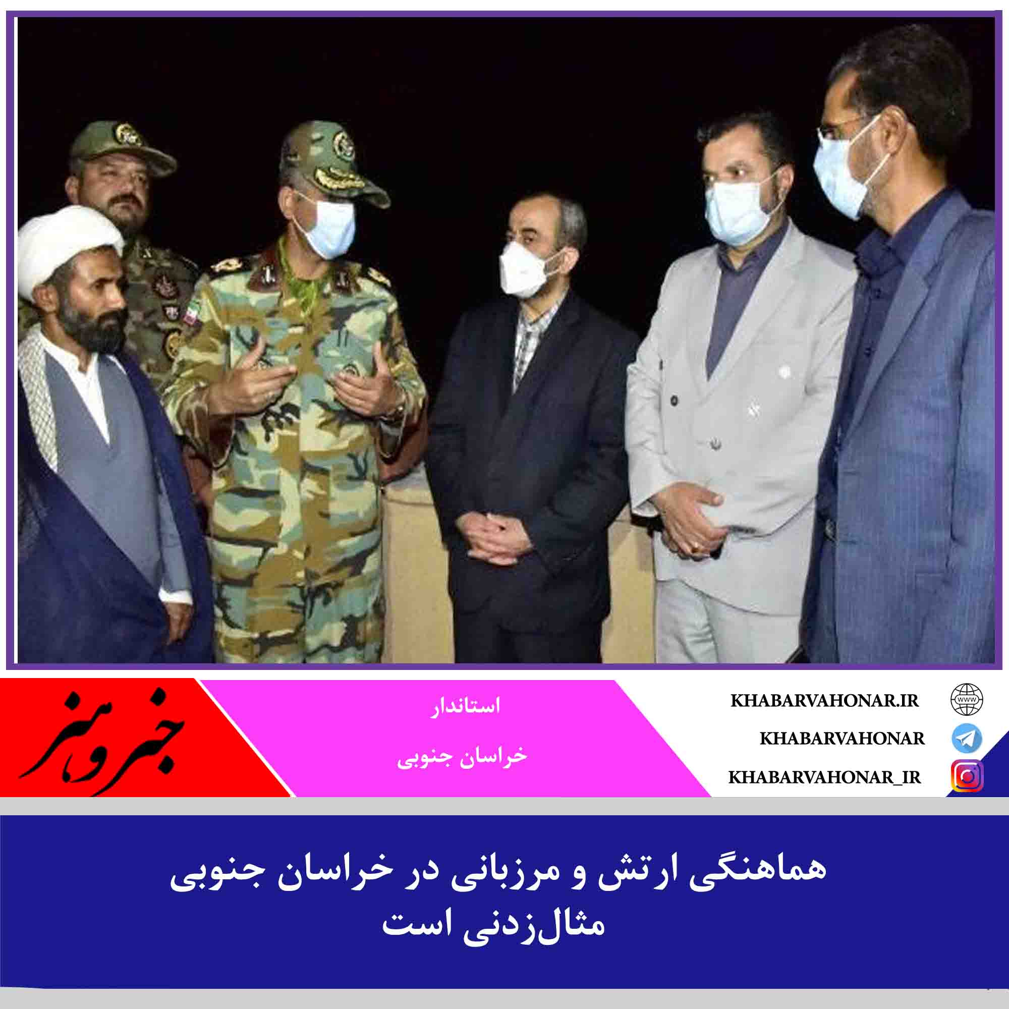 استاندار خراسان جنوبی گفت: تعامل و هماهنگی بین نیروهای ارتش و مرزبانی در مرزهای استان مثالزدنی است و اتحاد و همدلی بین نیروهای مسلح جای تقدیر دارد.