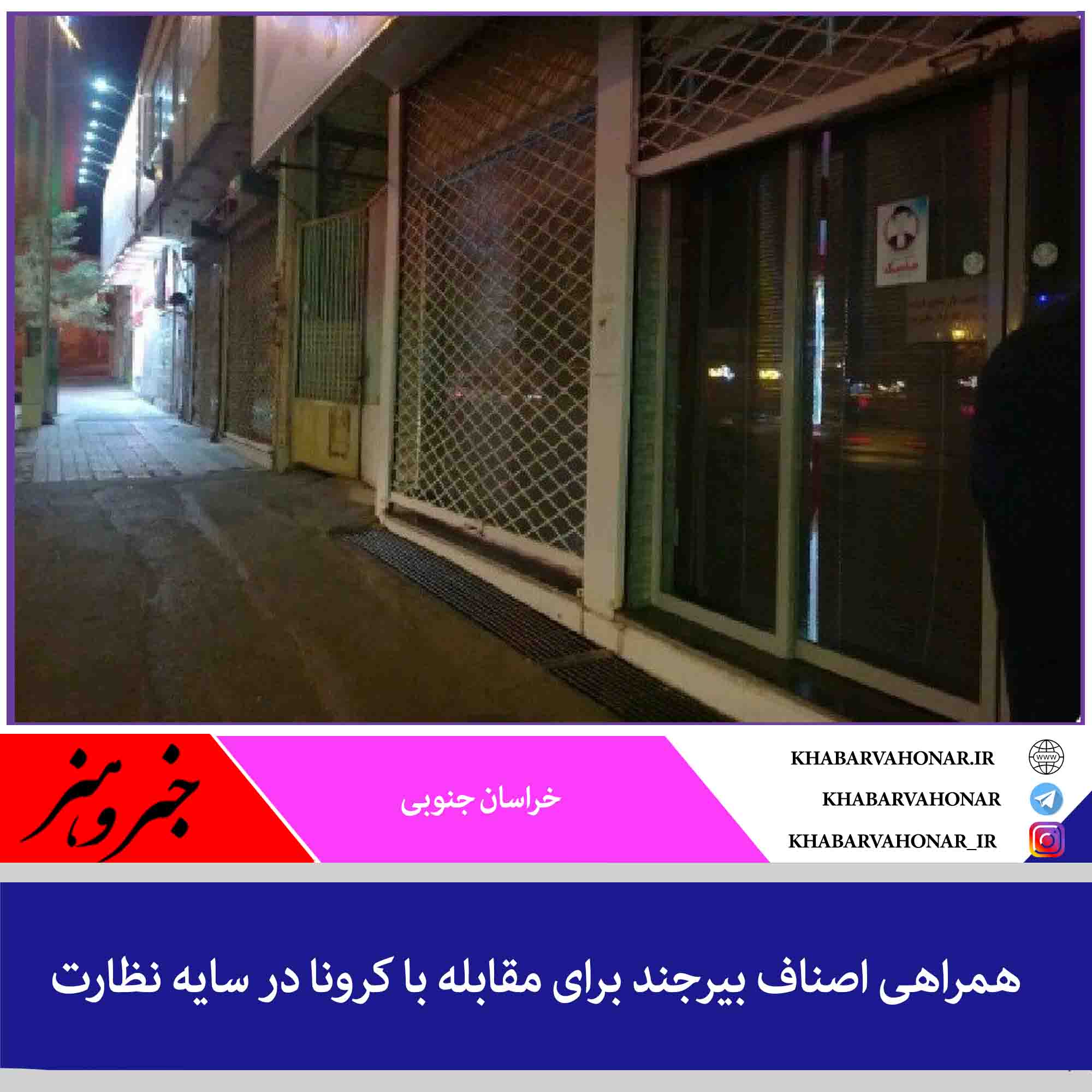 به گفته مسوولان همراهی اصناف در نقاط مختلف شهر بیرجند با اجرای طرح محدودیت فعالیت گروه‌های شغلی ۲، ۳ و ۴ پس از ساعت ۱۸ خوب بوده و تیم‌های بازرسی به تعدادی از واحدهای صنفی در حال فعالیت تذکر و اخطار دادند.