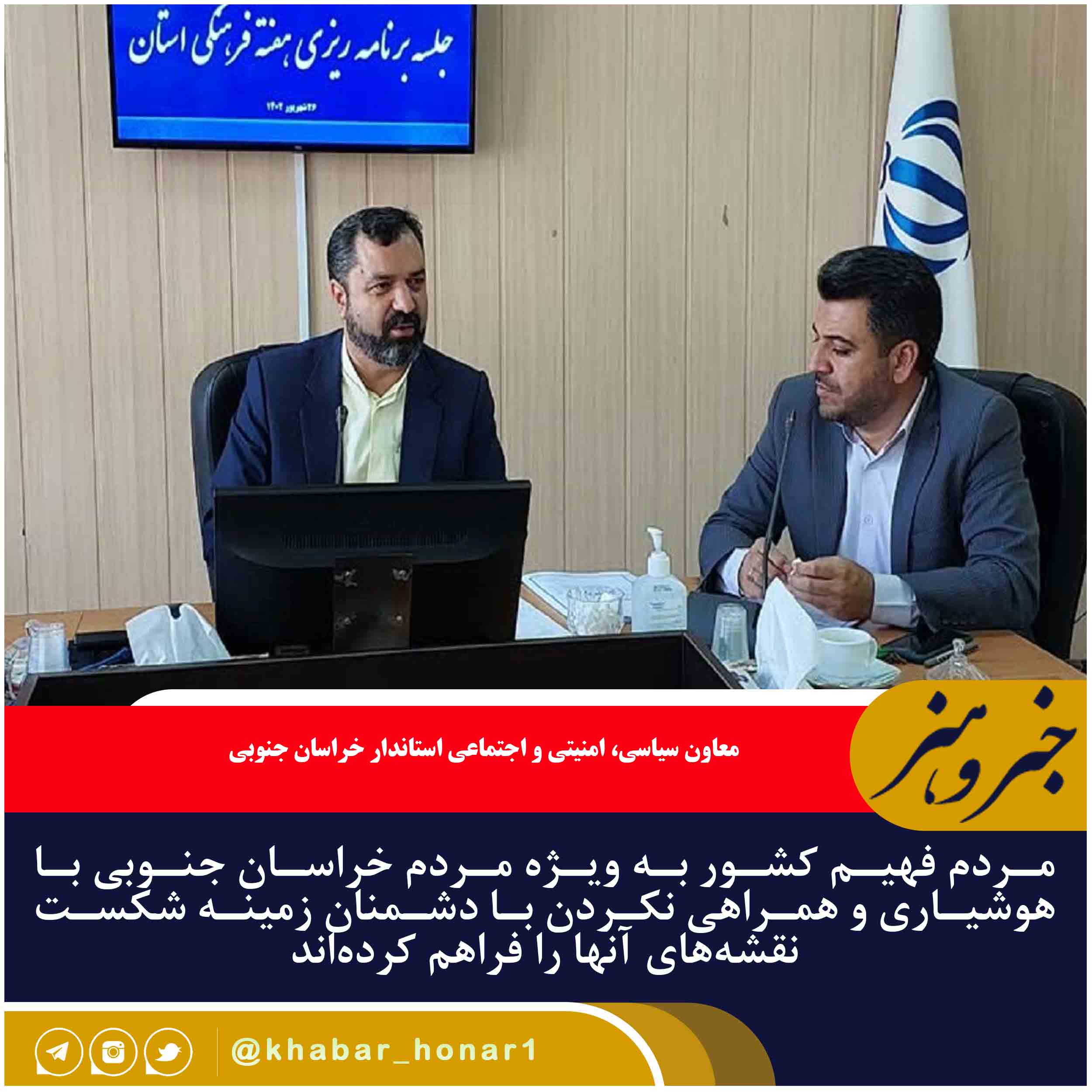 معاون سیاسی، امنیتی و اجتماعی استاندار خراسان جنوبی گفت: مردم فهیم کشور به ویژه مردم خراسان جنوبی با هوشیاری و همراهی نکردن با دشمنان زمینه شکست نقشههای آنها را فراهم کردهاند.