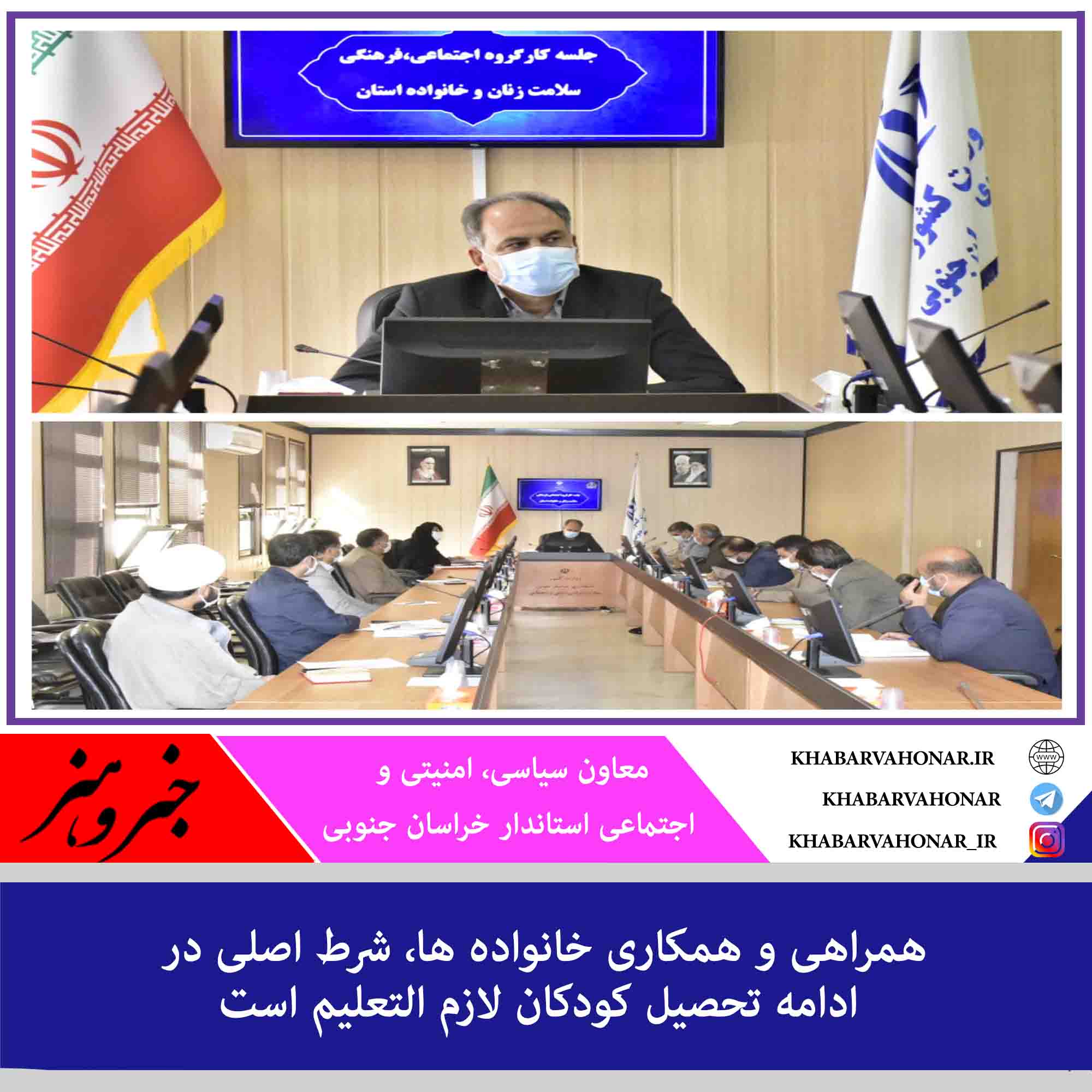 ?معاون سیاسی، امنیتی و اجتماعی استاندار خراسان جنوبی تأکید کرد: همراهی و همکاری خانواده ها، شرط اصلی در ادامه تحصیل کودکان لازم التعلیم است.