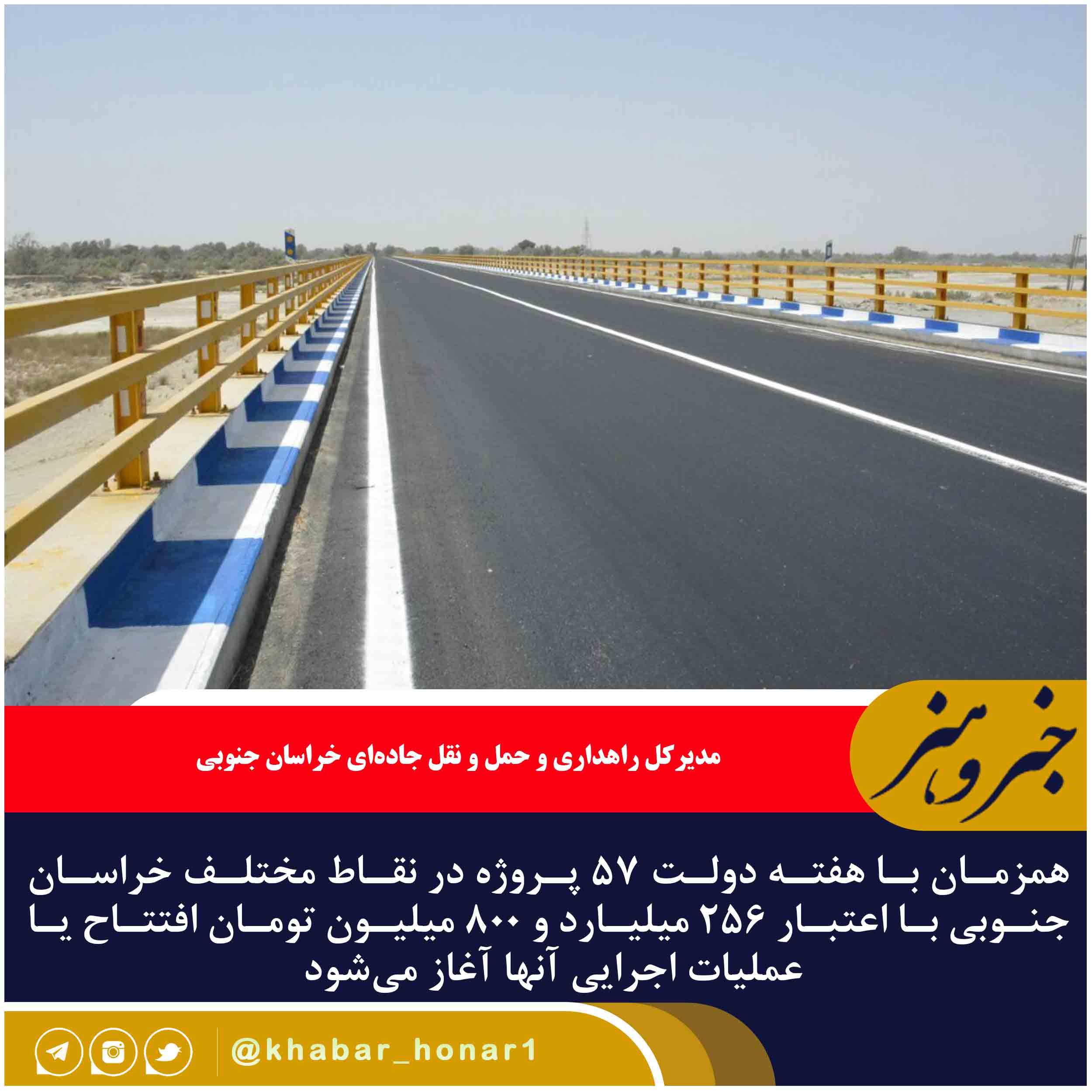 مدیرکل راهداری و حمل و نقل جاده‌ای خراسان جنوبی گفت: همزمان با هفته دولت ۵۷ پروژه در نقاط مختلف خراسان جنوبی با اعتبار ۲۵۶ میلیارد و ۸۰۰ میلیون تومان افتتاح یا عملیات اجرایی آنها آغاز می‌شود که از این تعداد ۵۳ پروژه آماده بهره‌برداری است.