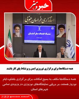 استاندار خراسان جنوبی با تأکید بر برپایی نمایشگاههای عرضه صنایعدستی، سوغات محلی و توانمندیهای هر شهرستان در مبادی ورودی شهرها افزود: فرمانداران همانند سال گذشته حضوری فعال و میدانی داشته باشند.