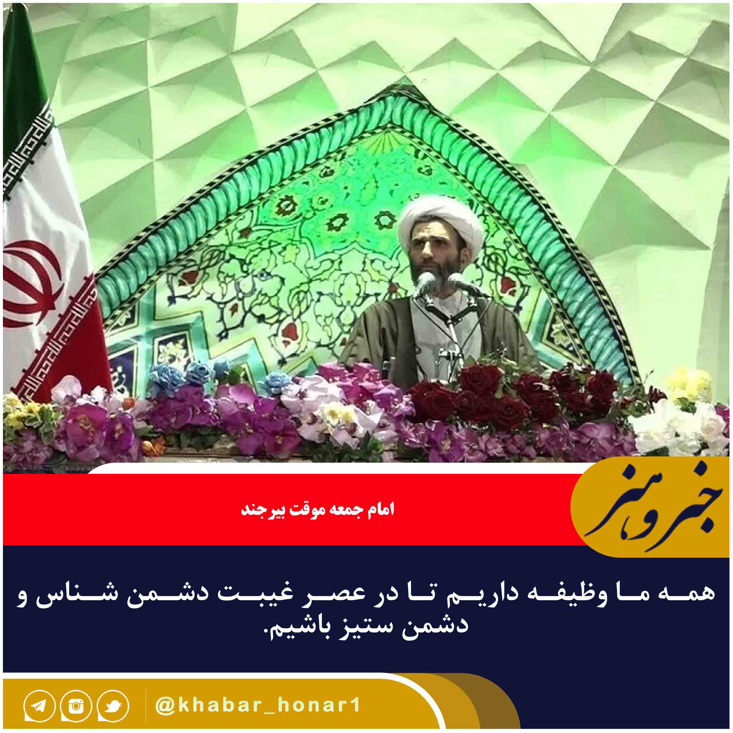 امام جمعه موقت بیرجند گفت: همه ما وظیفه داریم تا در عصر غیبت دشمن شناس و دشمن ستیز باشیم.