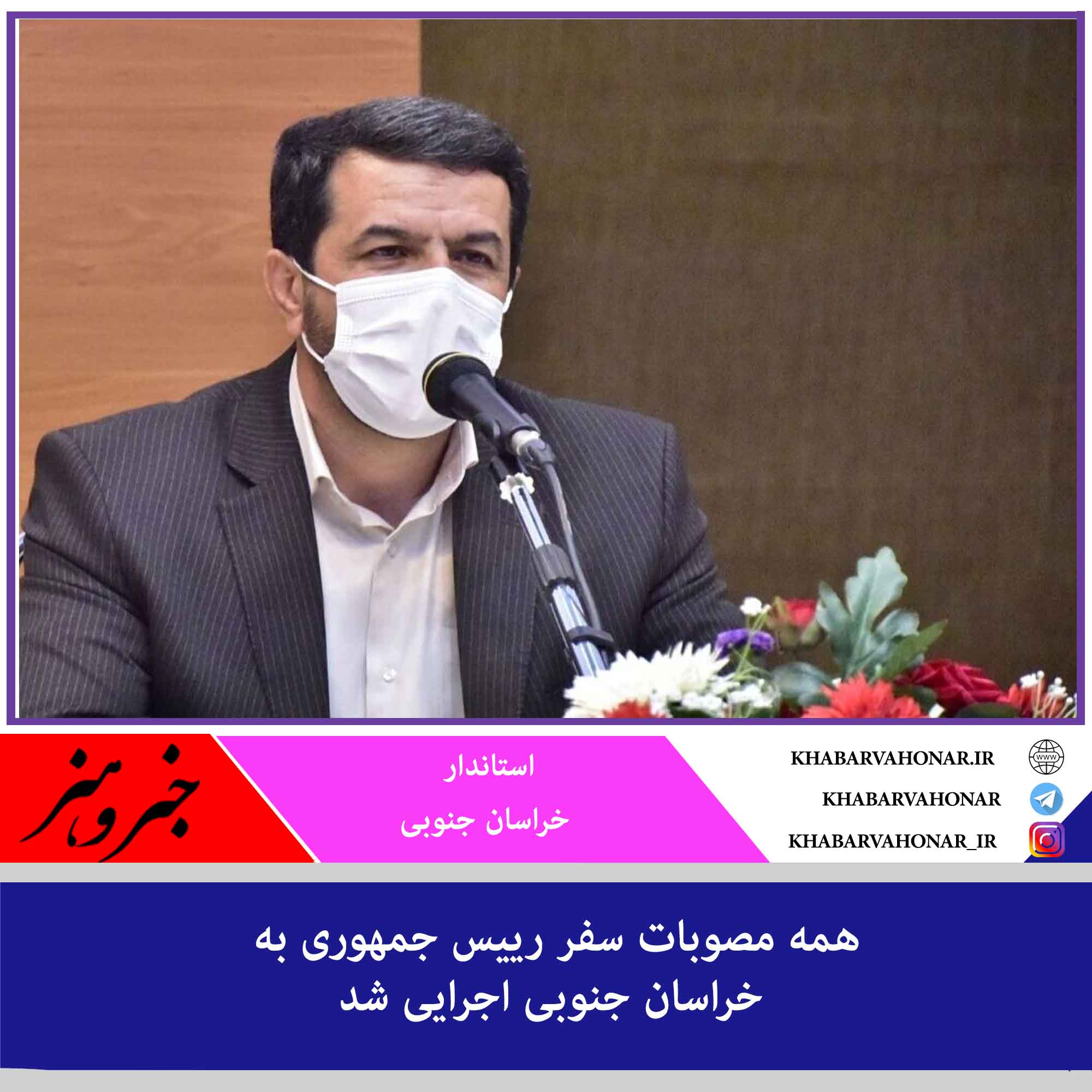 استاندار خراسان جنوبی گفت: تمامی مصوبات سفر رییس جمهوری به استان وارد فاز اجرایی شده و برای دستگاههای اجرایی در راستای تحقق مصوبات، مسئولیتسازی صورت گرفته است.