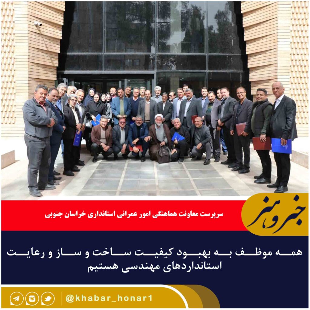 🔹سرپرست معاونت هماهنگی امور عمرانی استانداری خراسان جنوبی گفت: همه ما موظف به بهبود کیفیت ساخت و ساز و رعایت استانداردهای مهندسی هستیم.