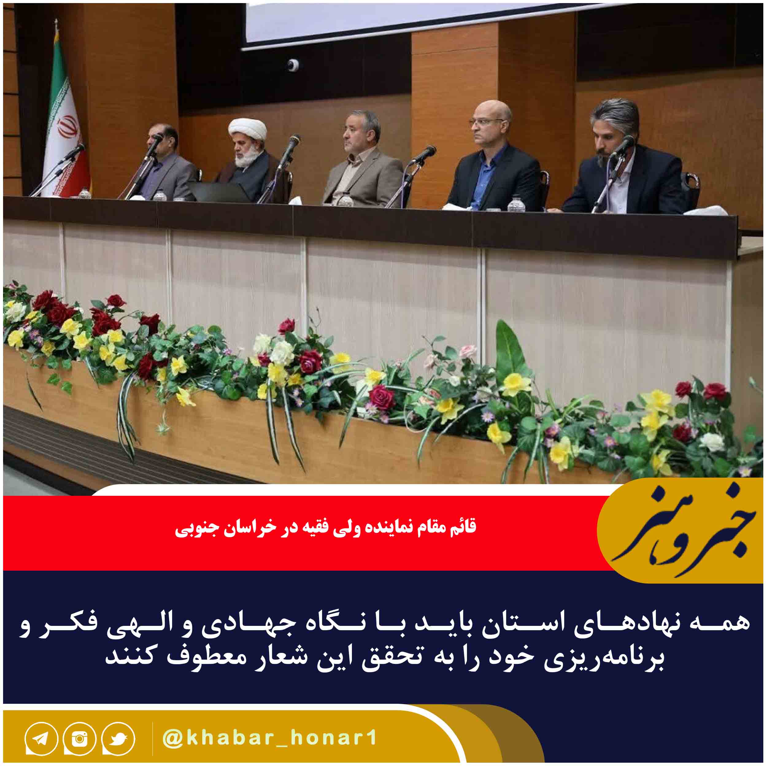 قائم مقام نماینده ولی فقیه در خراسان جنوبی و امام جمعه بیرجند با اشاره به انتخاب شعار سال با عنوان «سرمایه گذاری برای تولید» گفت: همه نهادهای استان باید با نگاه جهادی و الهی فکر و برنامهریزی خود را به تحقق این شعار معطوف کنند.