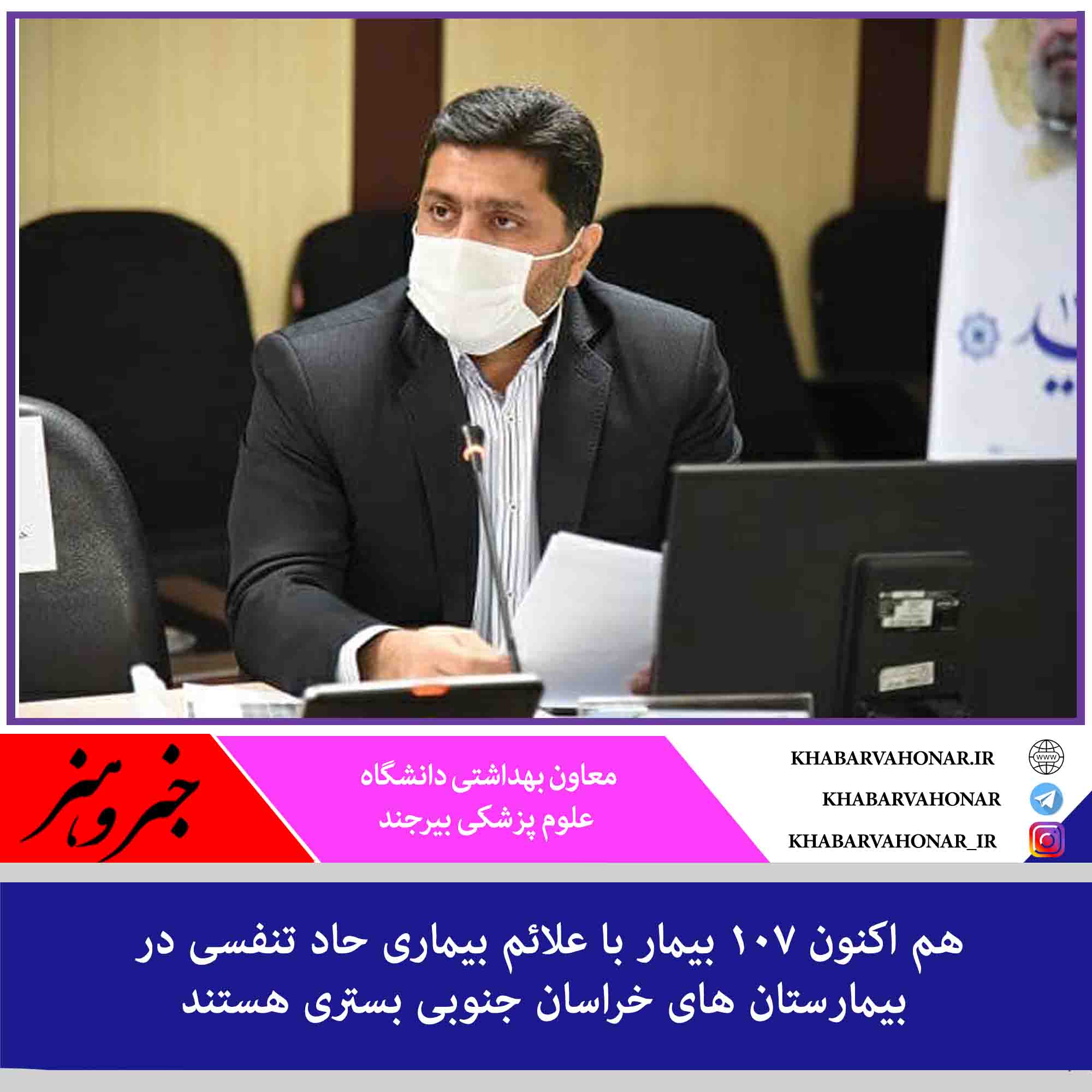 ?معاون بهداشتی علوم پزشکی بیرجند ، با بیان اینکه هم اکنون ۱۰۷ بیمار با علائم بیماری حاد تنفسی در بیمارستان های استان بستری هستند گفت: از این تعداد ۲۶ نفرمبتلا قطعی بیماری کرونا و ۴ نفر از مبتلایان کرونا در بخش مراقبت های ویژه بستری هستند.