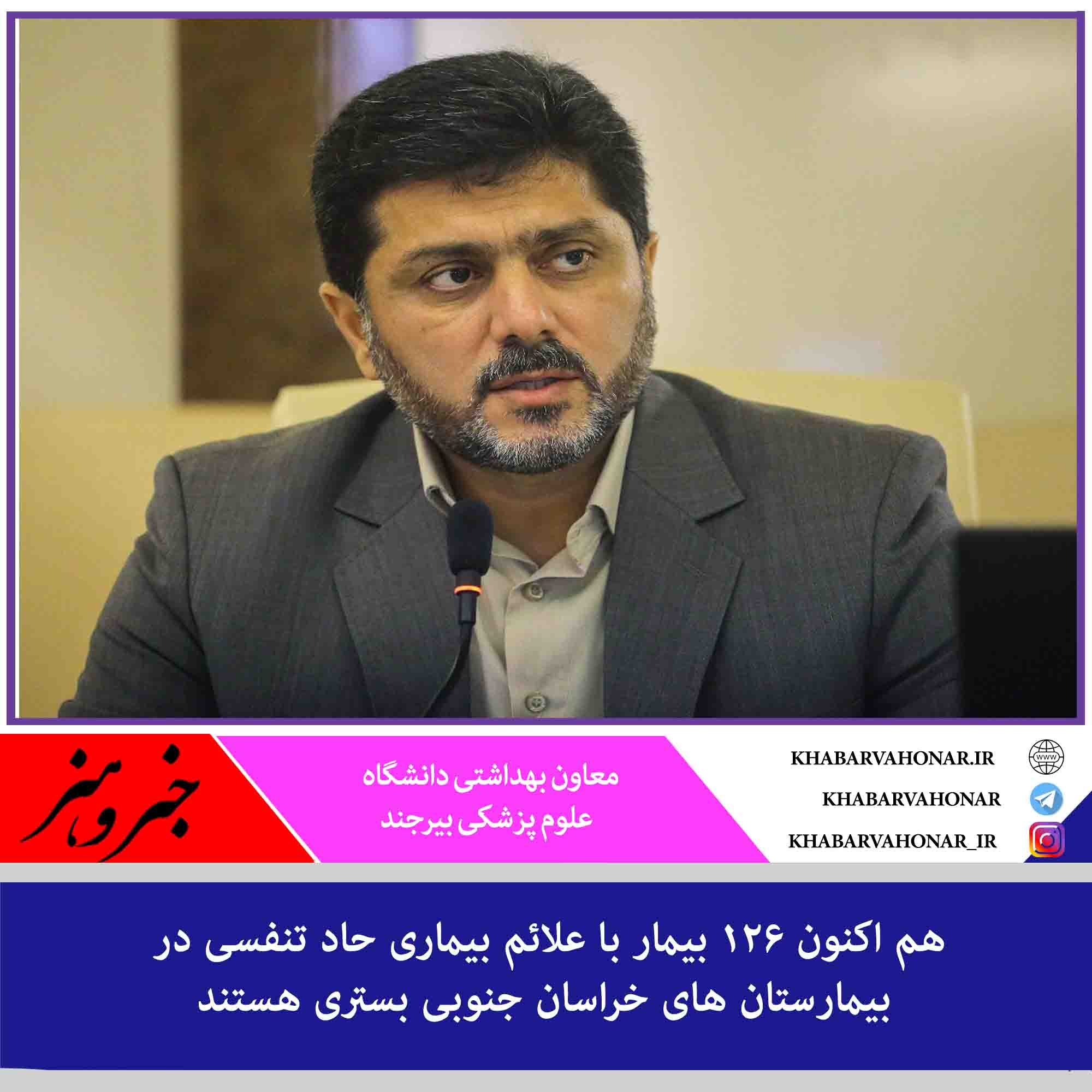 ?معاون بهداشتی علوم پزشکی بیرجند ، با بیان اینکه هم اکنون ۱۲۶ بیمار با علائم بیماری حاد تنفسی در بیمارستان های استان بستری هستند گفت: از این تعداد ۲۵ نفرمبتلا قطعی بیماری کرونا و ۶ نفر از مبتلایان کرونا در بخش مراقبت های ویژه بستری هستند.