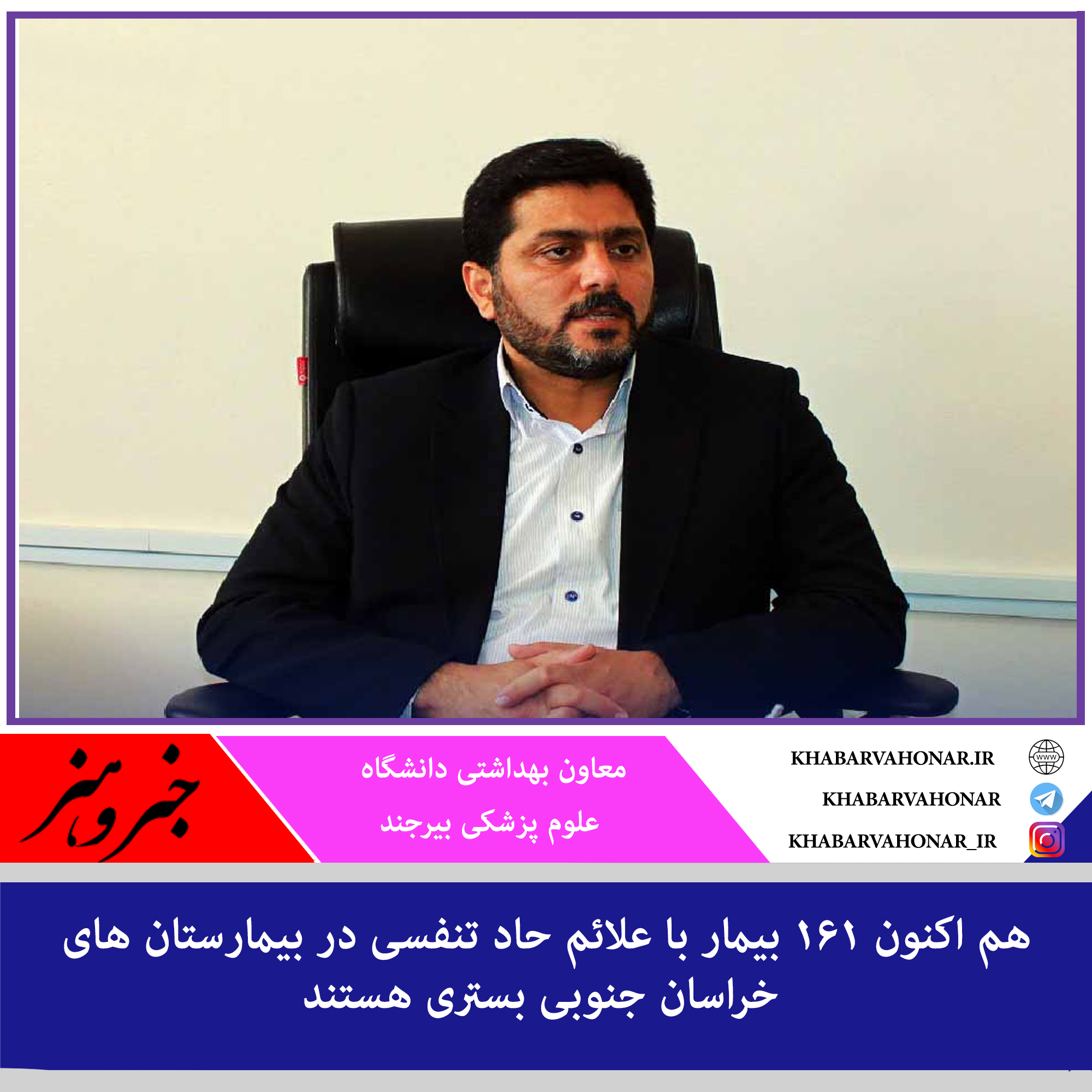 ?معاون بهداشتی دانشگاه علوم پزشکی بیرجند ، با بیان اینکه هم اکنون ۱۶۱ بیمار با علائم حاد تنفسی در بیمارستان های استان بستری هستند، گفت: از این تعداد ۵۳ نفرمبتلا قطعی بیماری کرونا و ۵ نفر از مبتلایان کرونا در بخش مراقبت های ویژه بستری هستند.