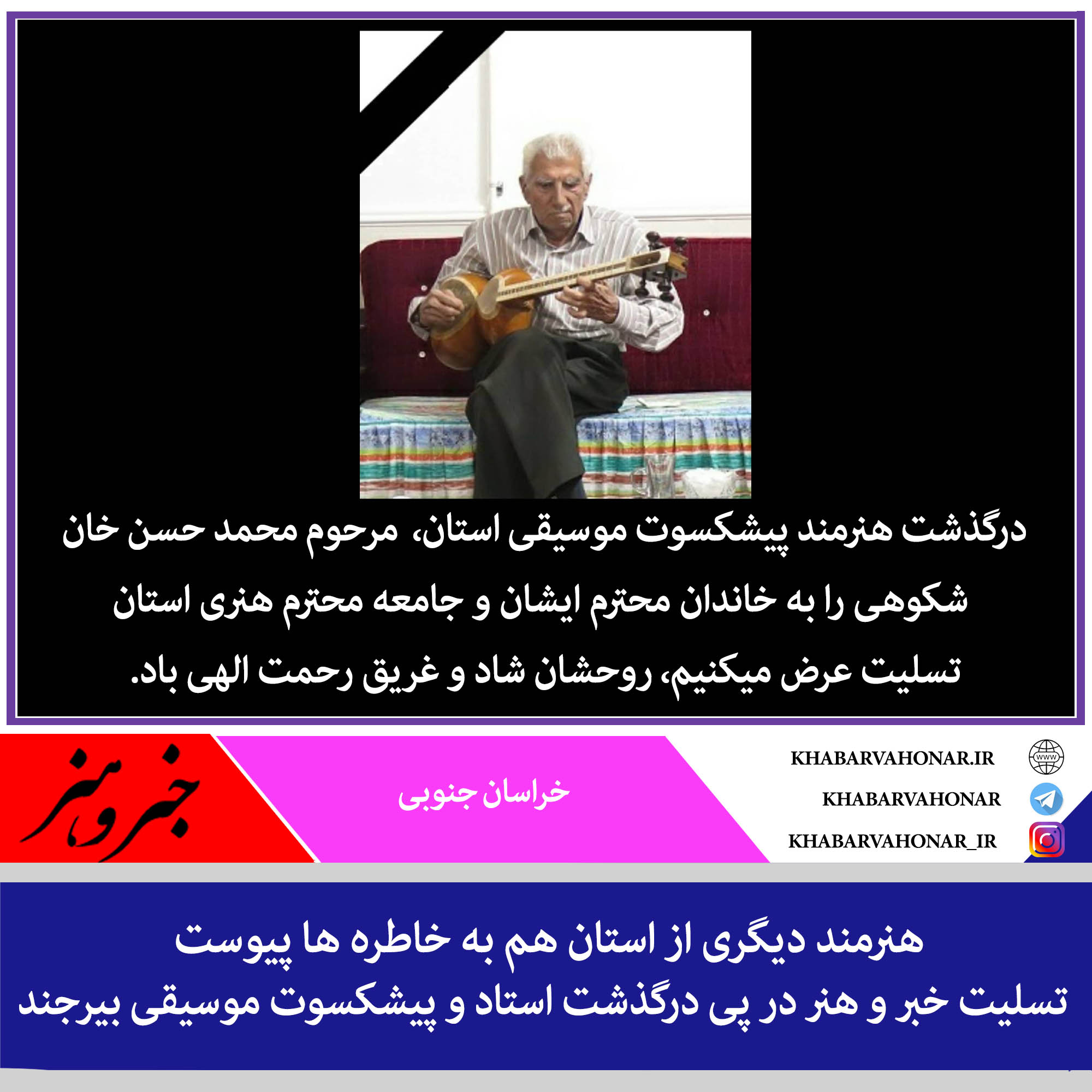 هنرمند دیگری از استان هم به خاطره ها پیوست تسلیت خبر و هنر در پی درگذشت استاد و پیشکسوت موسیقی بیرجند