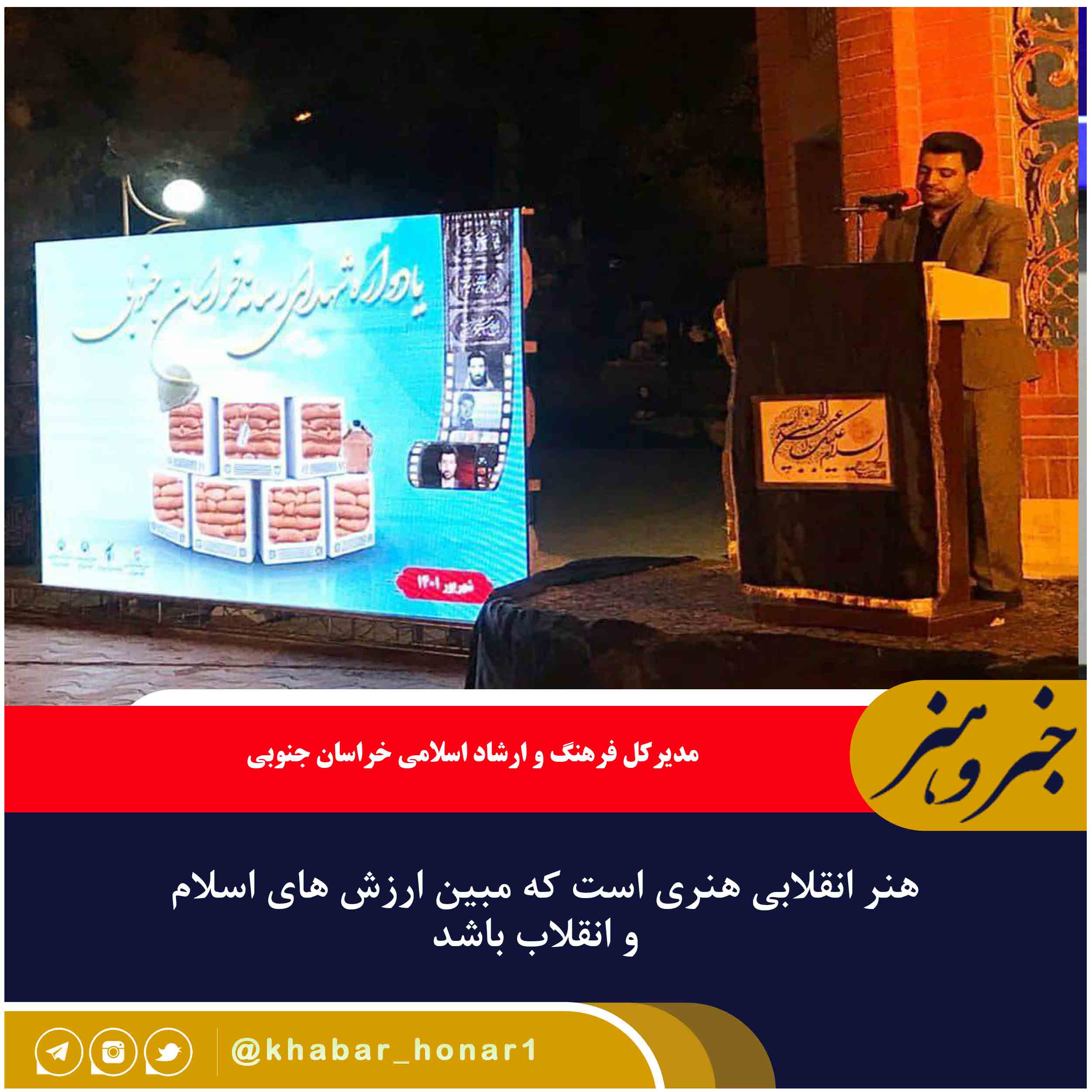 مدیرکل فرهنگ و ارشاد اسلامی خراسان جنوبی بیان کرد: امروز آسایش و امنیت را مدیون غیورمردانی هستیم که آسایش خود را به خطر انداختند و این مهم ترین تلنگری بود که امشب در این یادواره با حضور فرزندان شهید بزرگوار «رضوی» کسب کردیم.