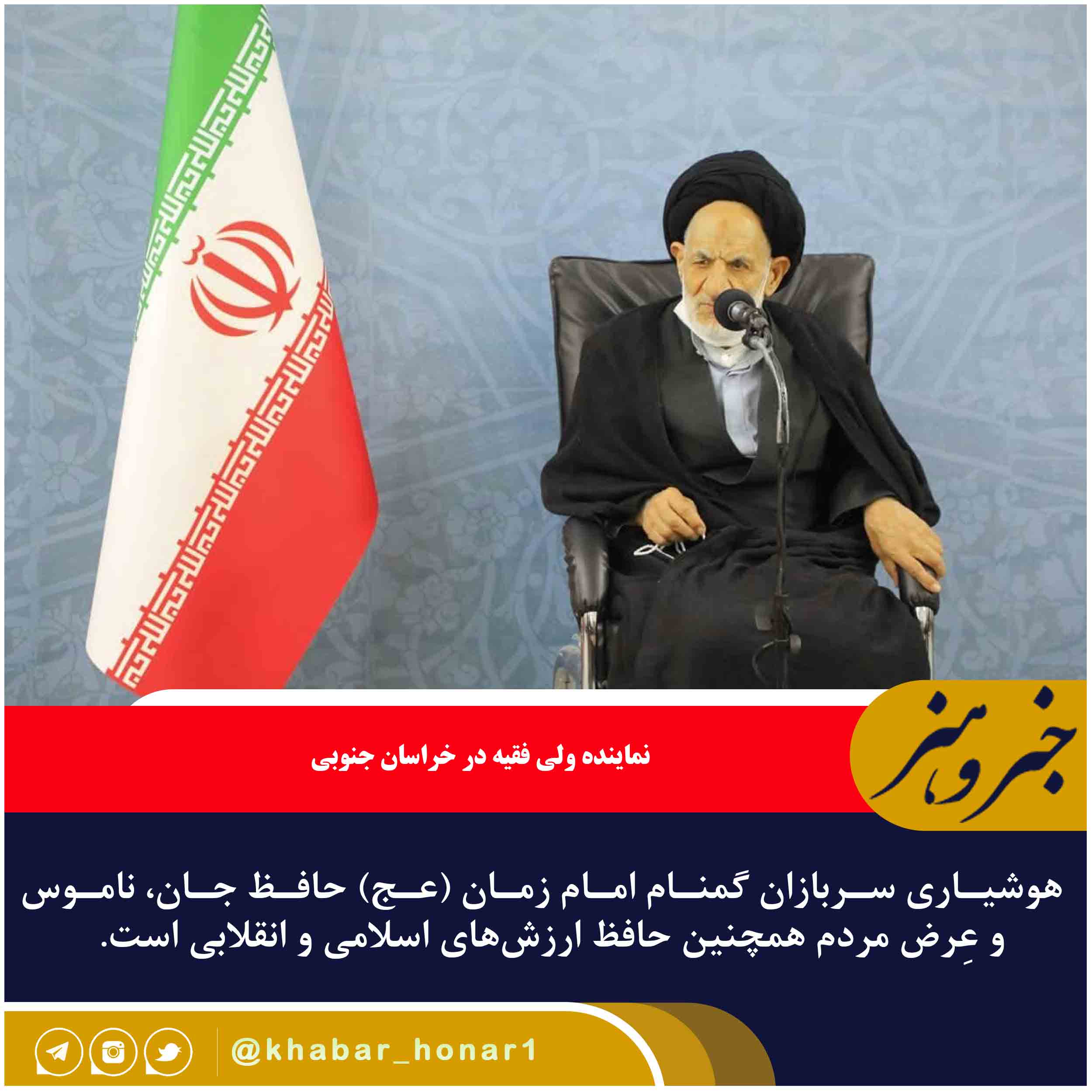 نماینده ولی فقیه در خراسان جنوبی و امام جمعه بیرجند گفت: هوشیاری سربازان گمنام امام زمان (عج) حافظ جان، ناموس و عِرض مردم همچنین حافظ ارزشهای اسلامی و انقلابی است.
