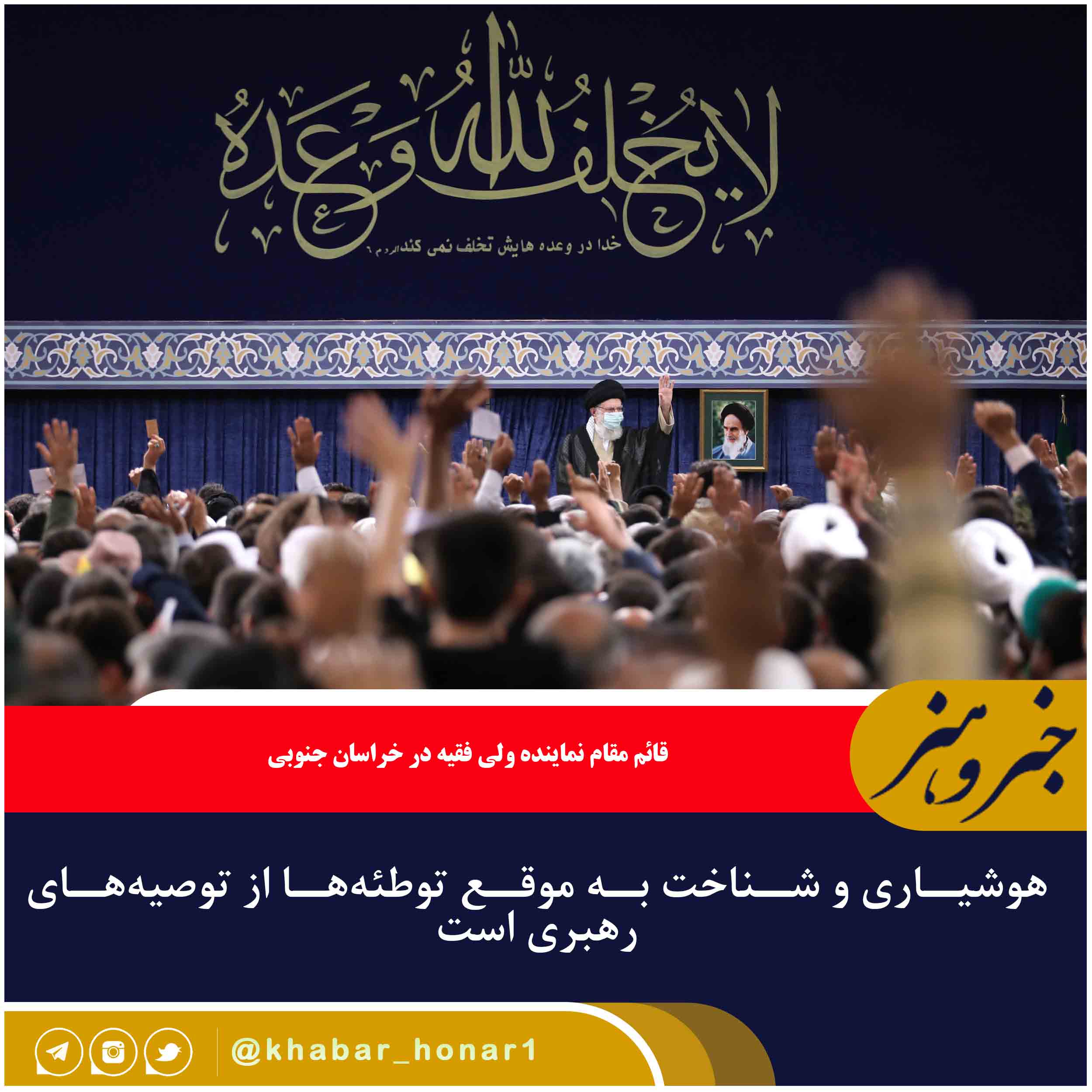 قائم مقام نماینده ولی فقیه در خراسان جنوبی گفت: یکی از برنامههای دشمن برای کشورهای منطقه، جنگ ترکیبی و بحران سازی است لذا رهبر معظم انقلاب نسبت به هوشیاری آحاد جامعه و شناخت به موقع توطئهها توصیه موکد دارند.