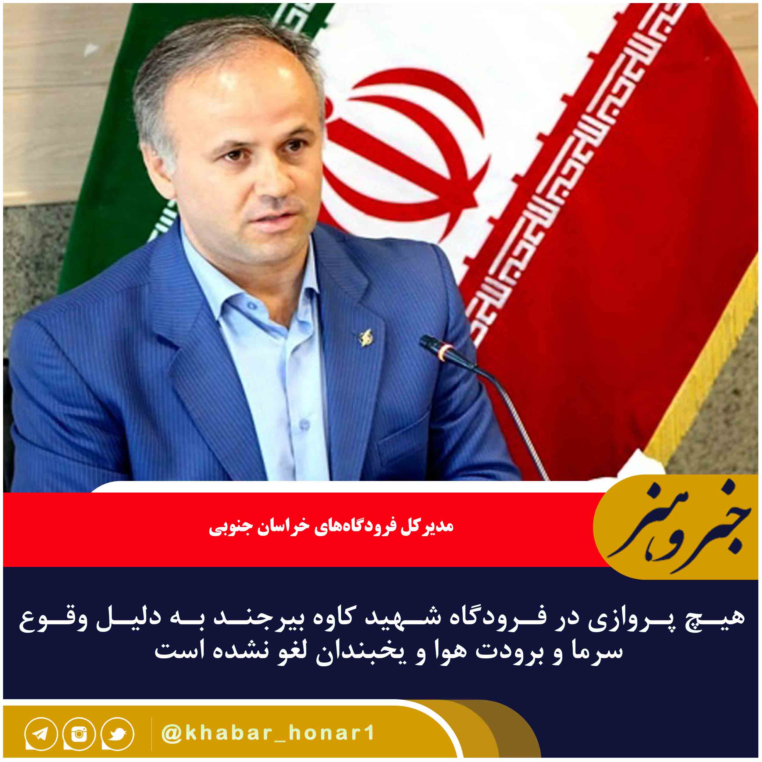 مدیرکل فرودگاههای خراسان جنوبی گفت: هشدارهای هواشناسی مبنی بر وقوع سرما و برودت هوا و یخبندان هیچ پروازی را لغو و یا با تاخیر مواجه نکرد.