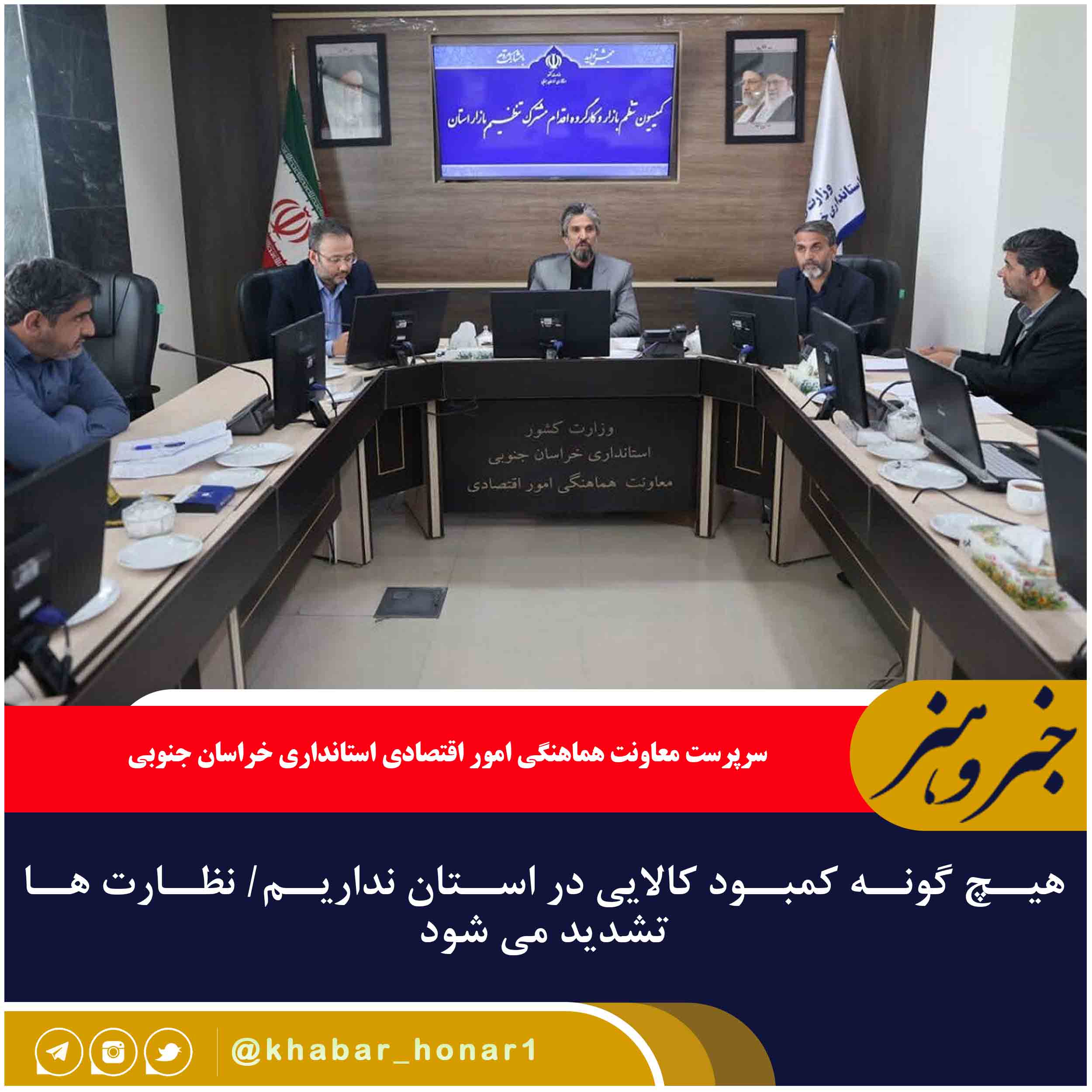 ?سرپرست معاونت هماهنگی امور اقتصادی استانداری خراسان جنوبی با تأکید بر اینکه هیچ گونه کمبود کالایی در استان نداریم، گفت: با توجه به مناسبت هایی که پیش رو داریم، نظارت ها بر بازار استان تشدید می شود.