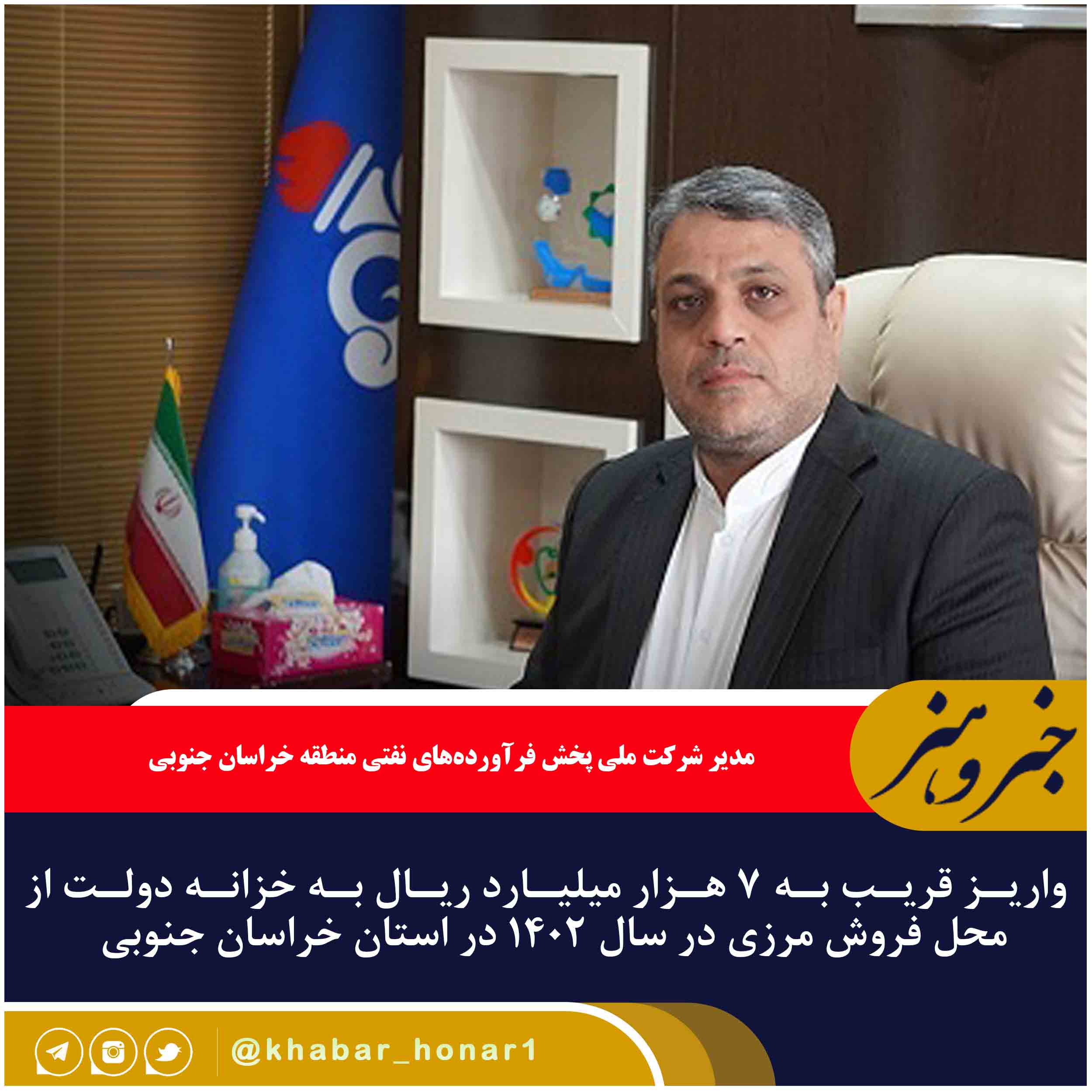 مدیر شرکت ملی پخش فرآوردههای نفتی منطقه خراسان جنوبی گفت: فروش مرزی فرآوردههای نفتی در این منطقه در سال گذشته قریب به ۷ هزار میلیارد ریال رسید.