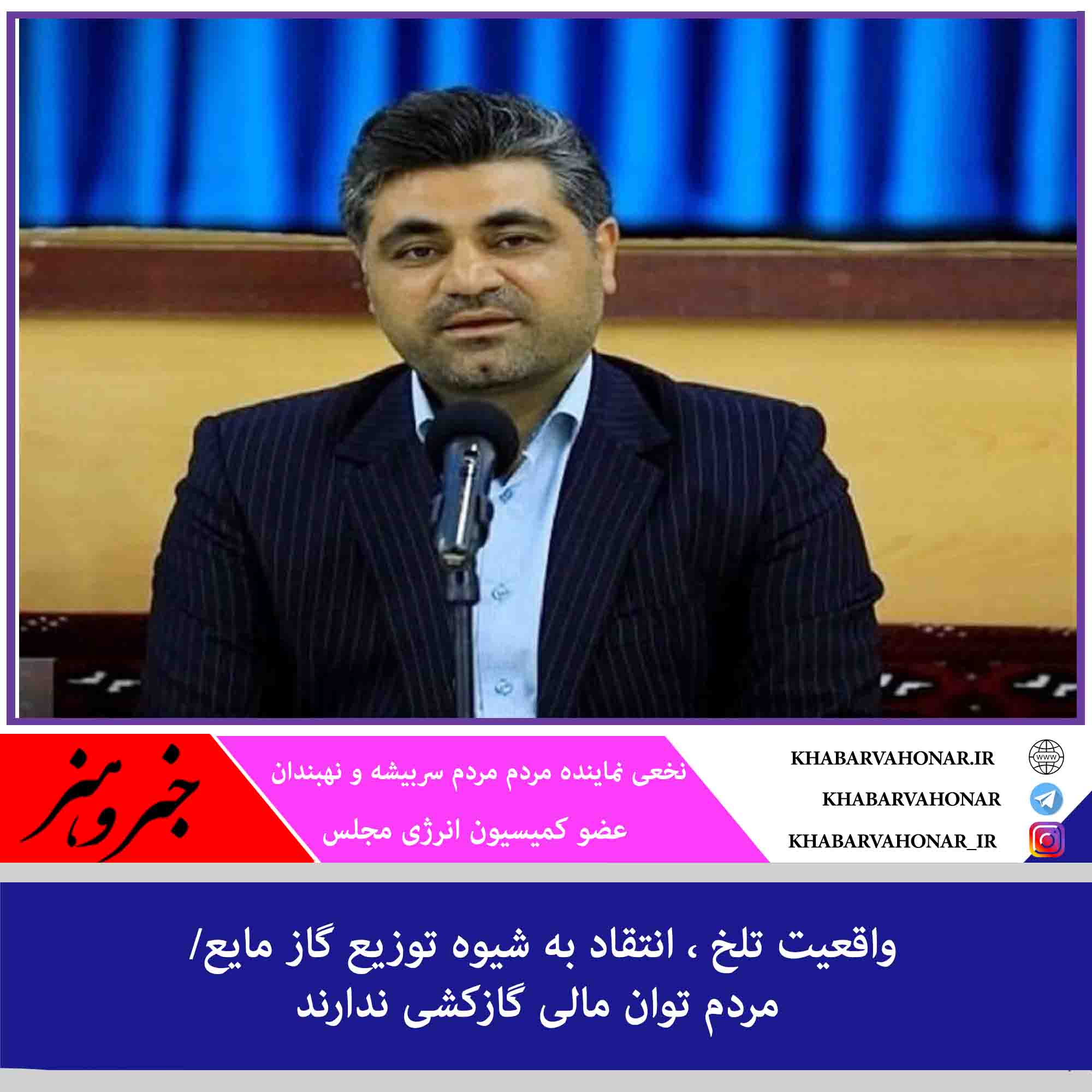 نخعی نماینده مردم سربیشه و نهبندان گفت: مردم نهبندان توان مالی گازکشی منازل و خرید لوازم گرمایشی را ندارند.