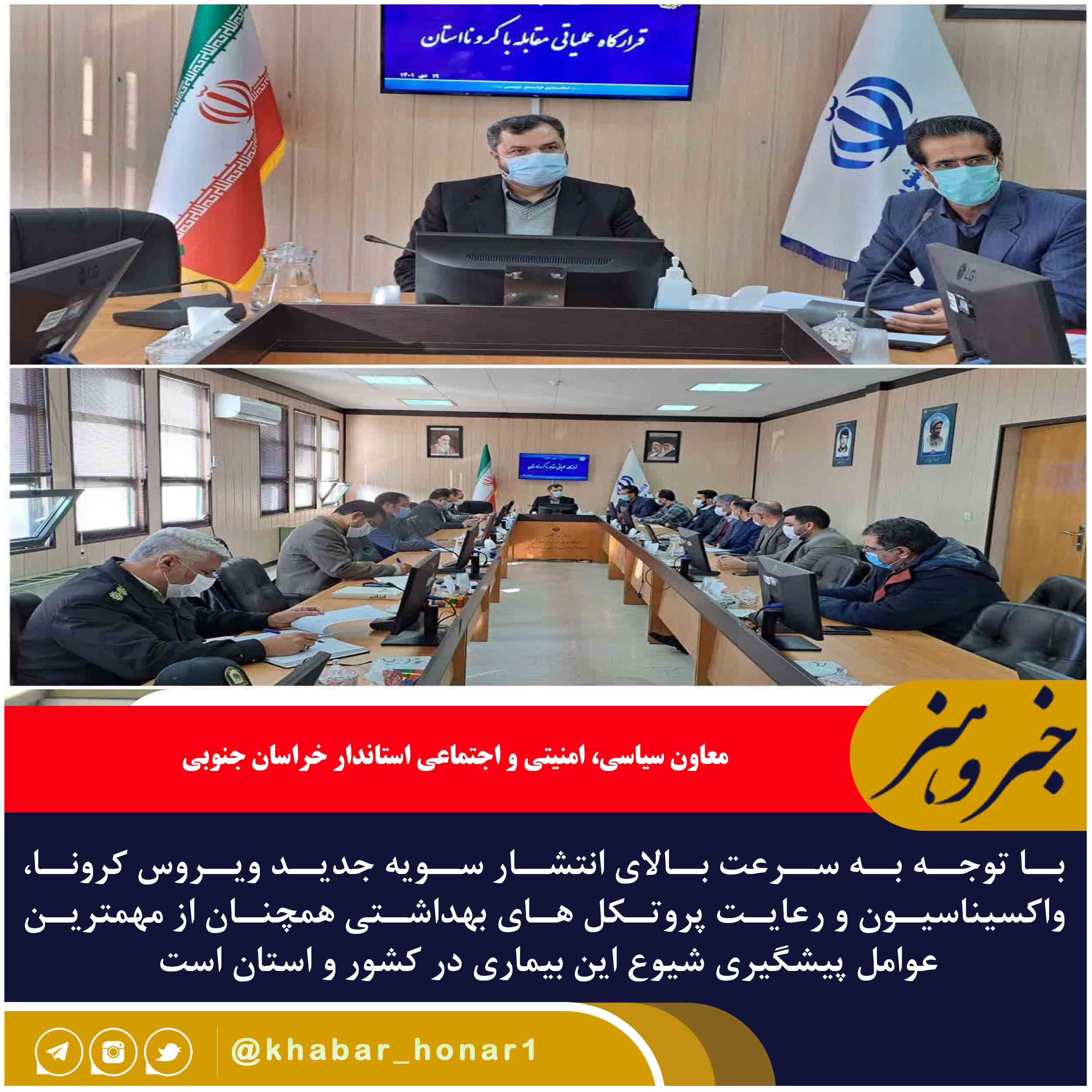 معاون استاندار خراسان جنوبی بیان کرد: برگزاری منظم جلسات ستاد مقابله با کرونا در شهرستانها لازم است لذا فرمانداران موظف هستند ضمن تشکیل جلسات ستاد مقابله کرونا تصمیمات لازم را برای پیشگیری اتخاذ کنند.