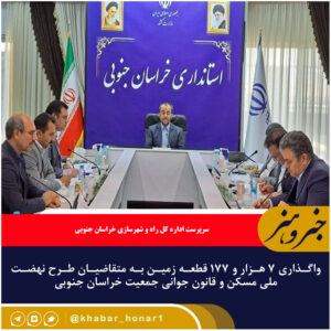 سرپرست اداره کل راه و شهرسازی خراسان جنوبی گفت: در سه ماهه ابتدایی سالجاری هفت هزار و۱۷۷ قطعه زمین به متقاضیان طرح نهضت ملی مسکن و قانون جوانی جمعیت دراستان خراسان جنوبی تخصیص و واگذار شد.