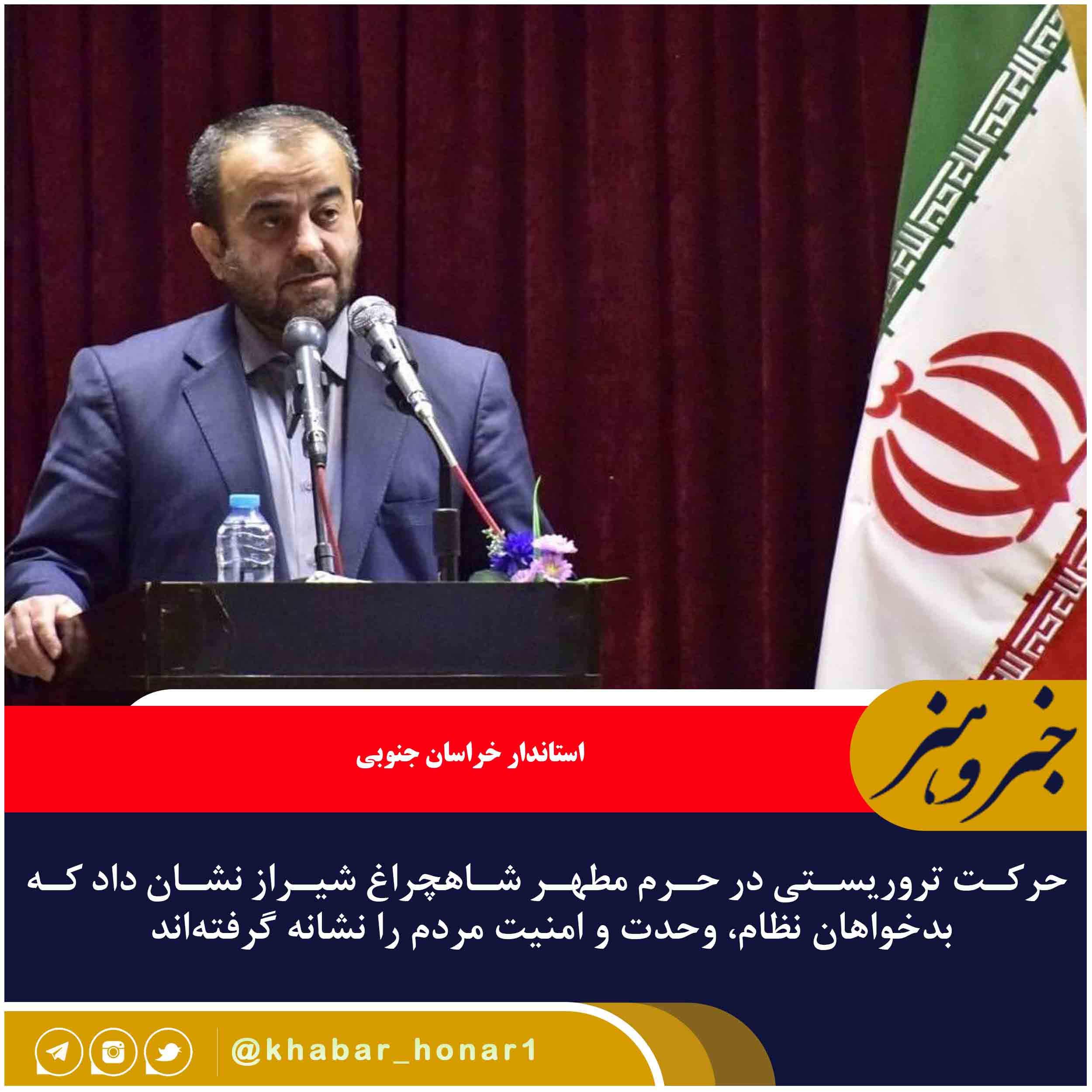 استاندار خراسان جنوبی گفت: حرکت تروریستی در حرم مطهر شاهچراغ شیراز نشان داد که بدخواهان نظام، وحدت و امنیت مردم را نشانه گرفتهاند.