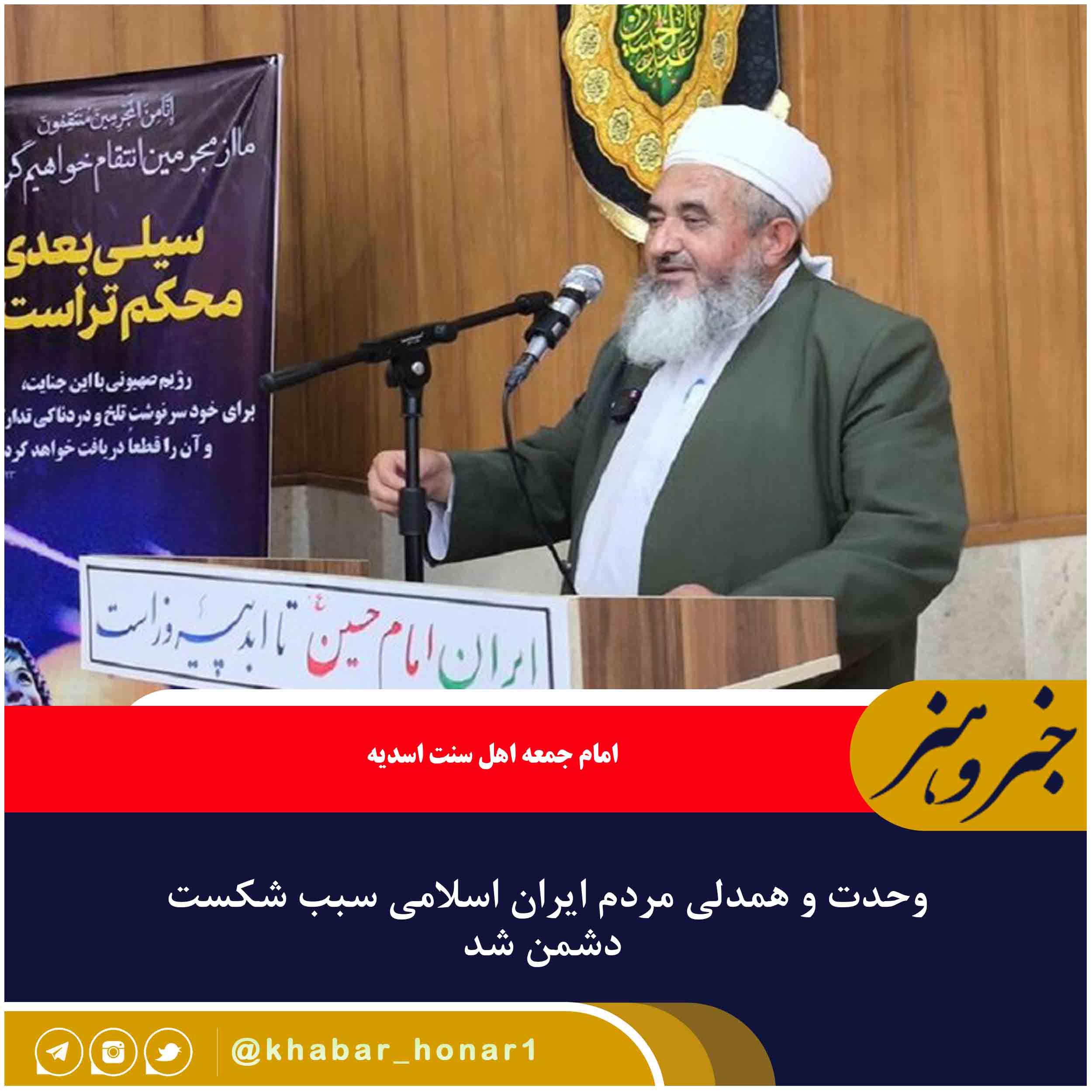 امام جمعه اهل سنت اسدیه تاکید کرد: وحدت و همدلی مردم ایران اسلامی سبب شکست دشمن شد