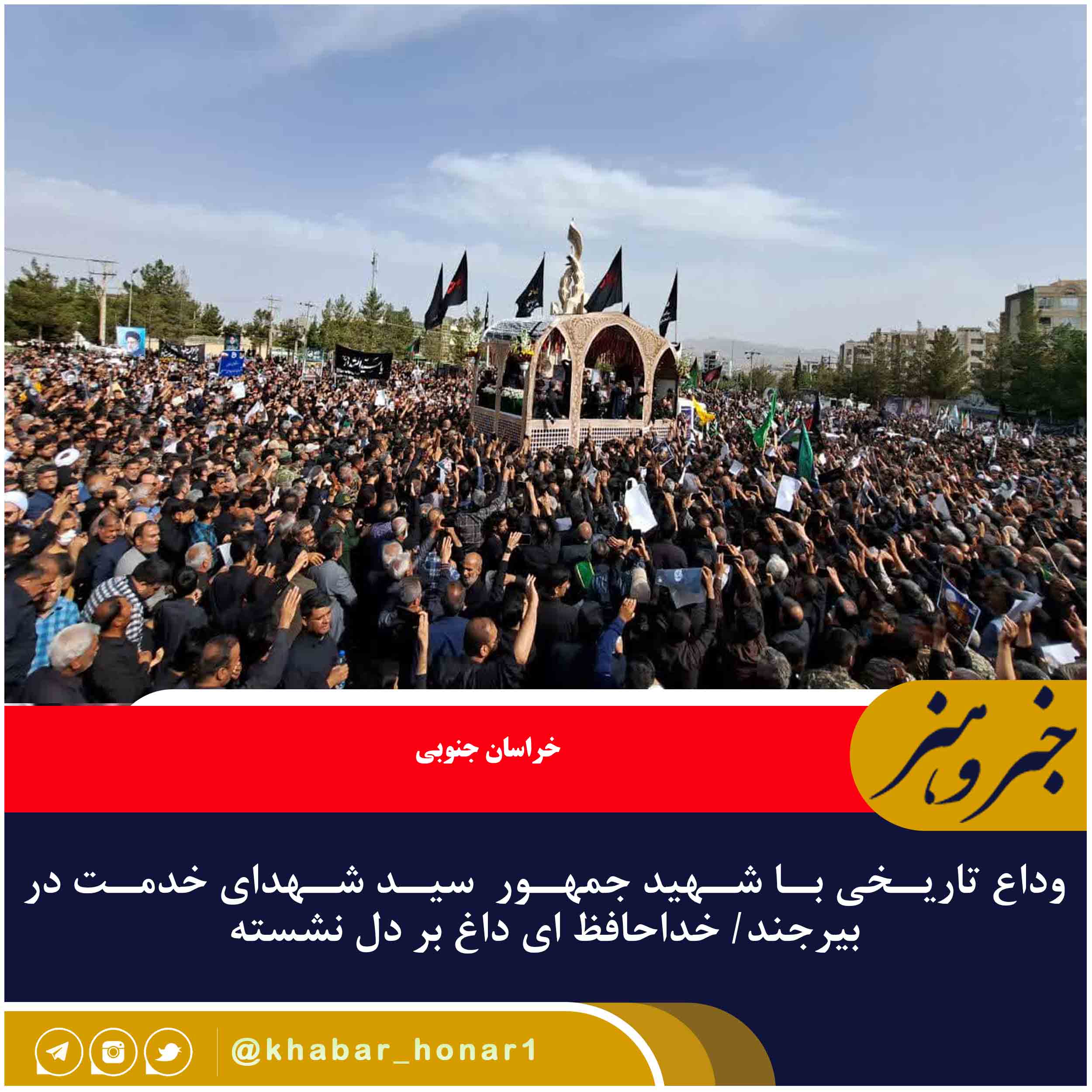 مردم شهیدپرور و ولایتمدار خراسان جنوبی روز پنجشنبه سوم خرداد برای آخرین بار میزبان رئیس جمهور شهید بودند و در مراسم تشییع تاریخی با پیکر سید شهدای خدمت وداع کردند.