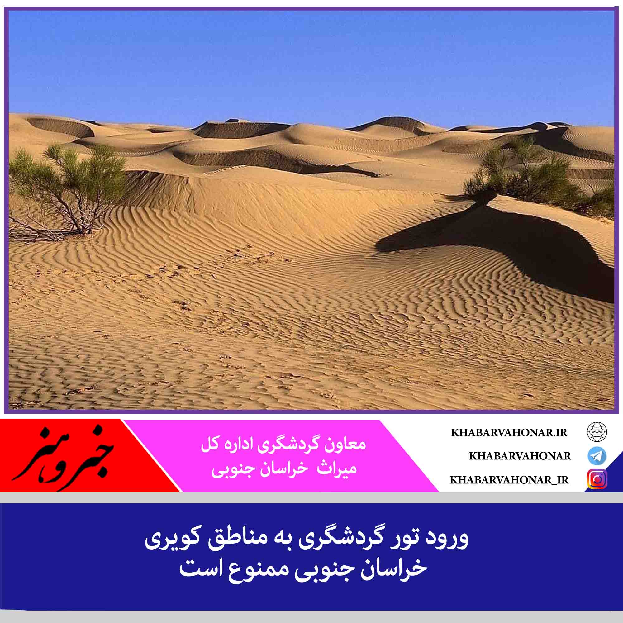 معاون گردشگری اداره کل میراث فرهنگی، گردشگری و صنایع دستی خراسان جنوبی گفت: برخی کویرها جزو مناطق زرد هستند که ورود به آن نیاز به مجوز دارد و براساس مصوبات ستاد ملی مقابله با کرونا در هفته اخیر برگزاری هرگونه تور گردشگری، غیرمجاز اعلام شده و به اطلاع آژانسها هم رسیده است.