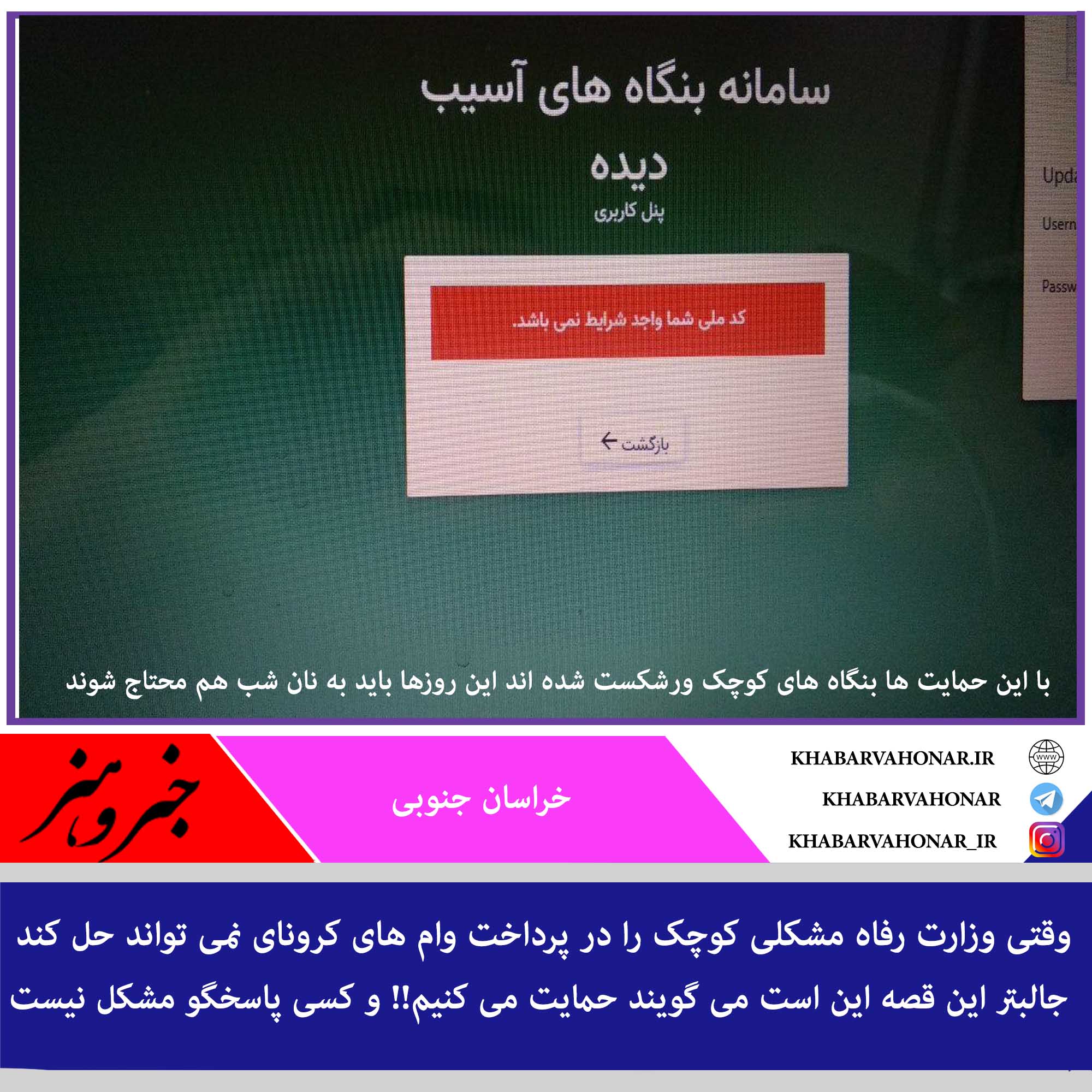 وقتی وزارت رفاه مشکلی کوچک را در پرداخت وام های کرونای نمی تواند حل کند جالبتر این قصه این است می گویند حمایت می کنیم!! و کسی پاسخگو مشکل نیست
