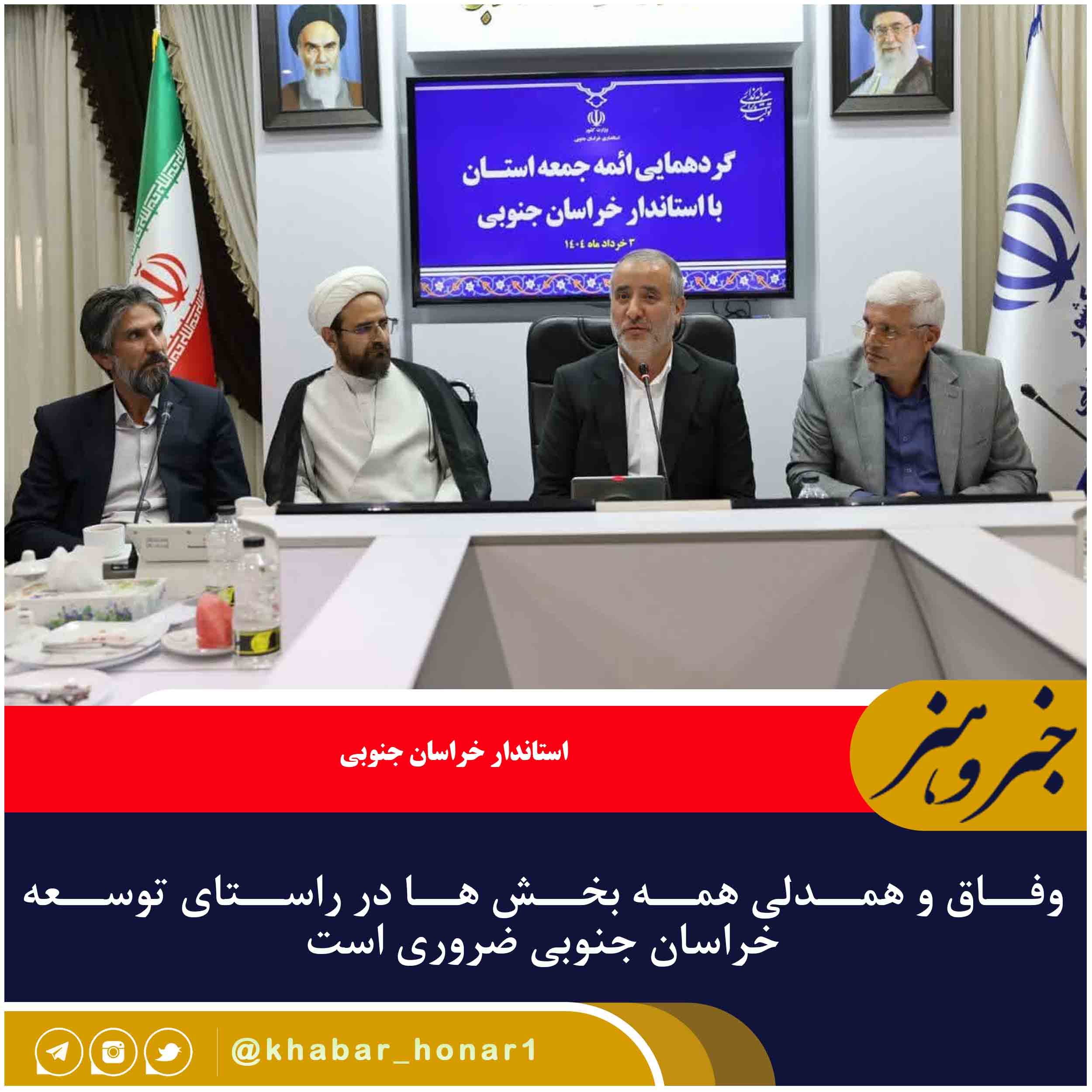 🔹استاندار خراسان جنوبی تأکید کرد: وفاق و همدلی همه بخش ها در راستای توسعه خراسان جنوبی ضروری است.