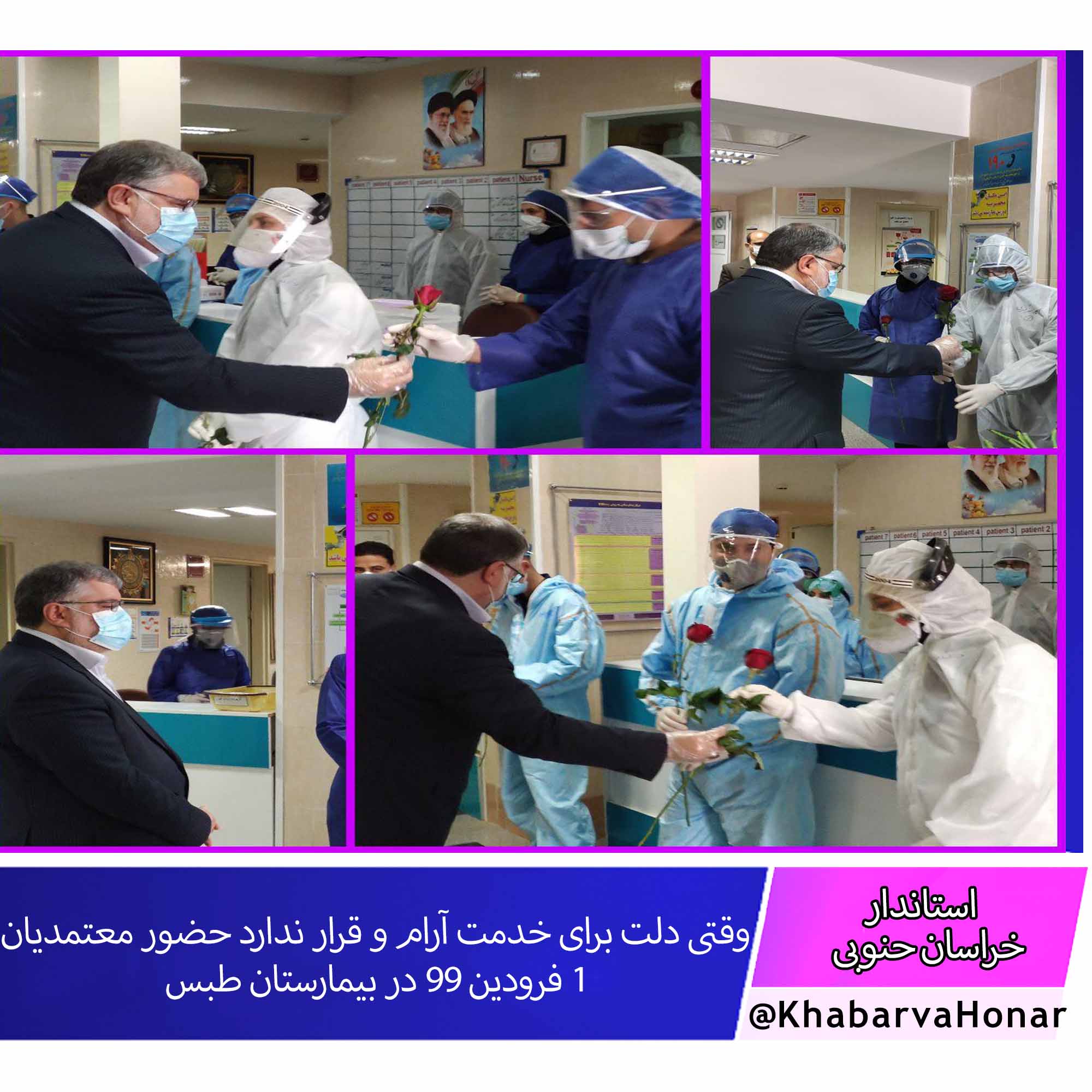 وقتی دلت برای خدمت آرام و قرار ندارد حضور معتمدیان ۱ فرودین ۹۹ در بیمارستان طبس