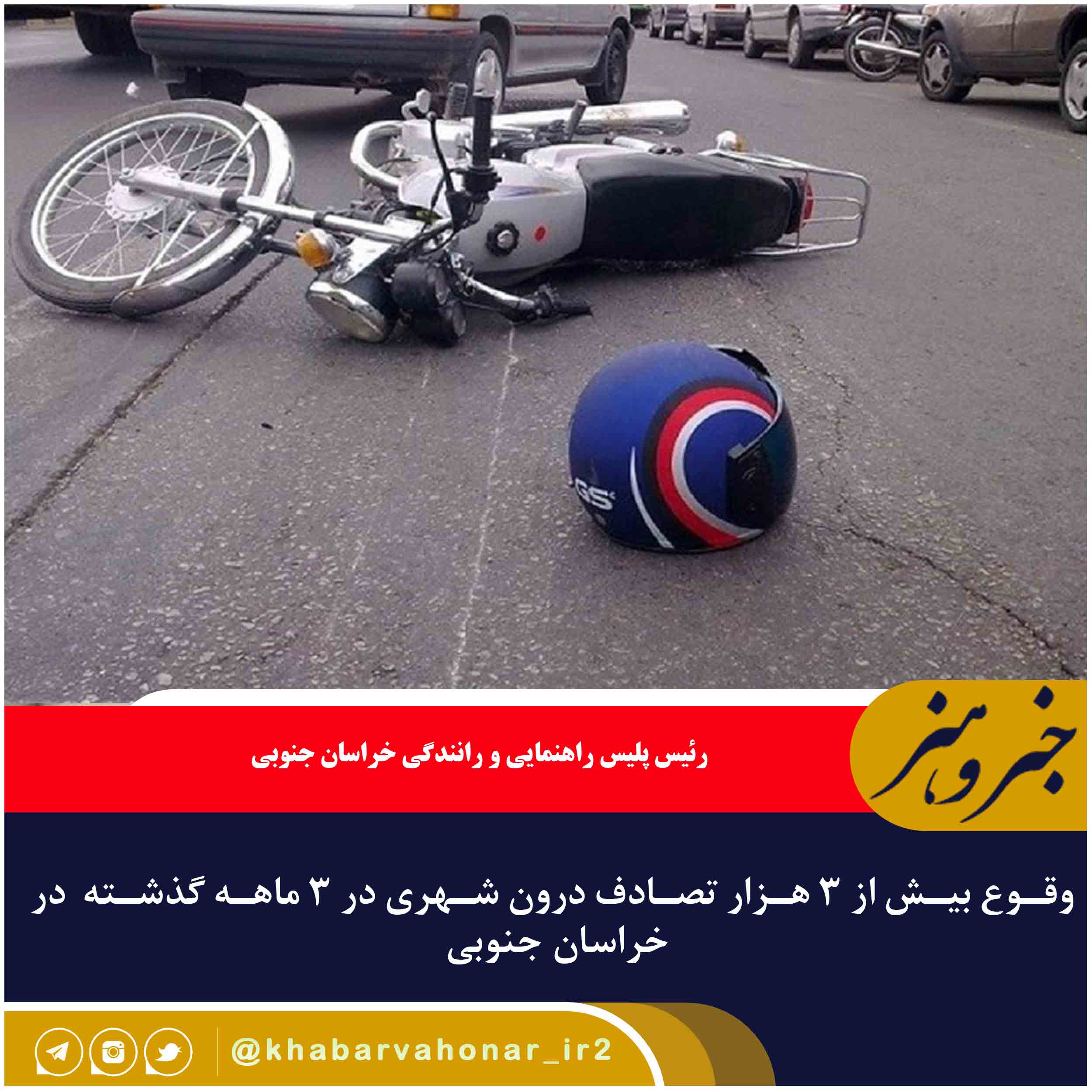 رئیس پلیس راهنمایی و رانندگی خراسان جنوبی از وقوع بیش از ۳ هزار تصادف درون شهری در استان در ۳ ماهه گذشته خبر داد.
