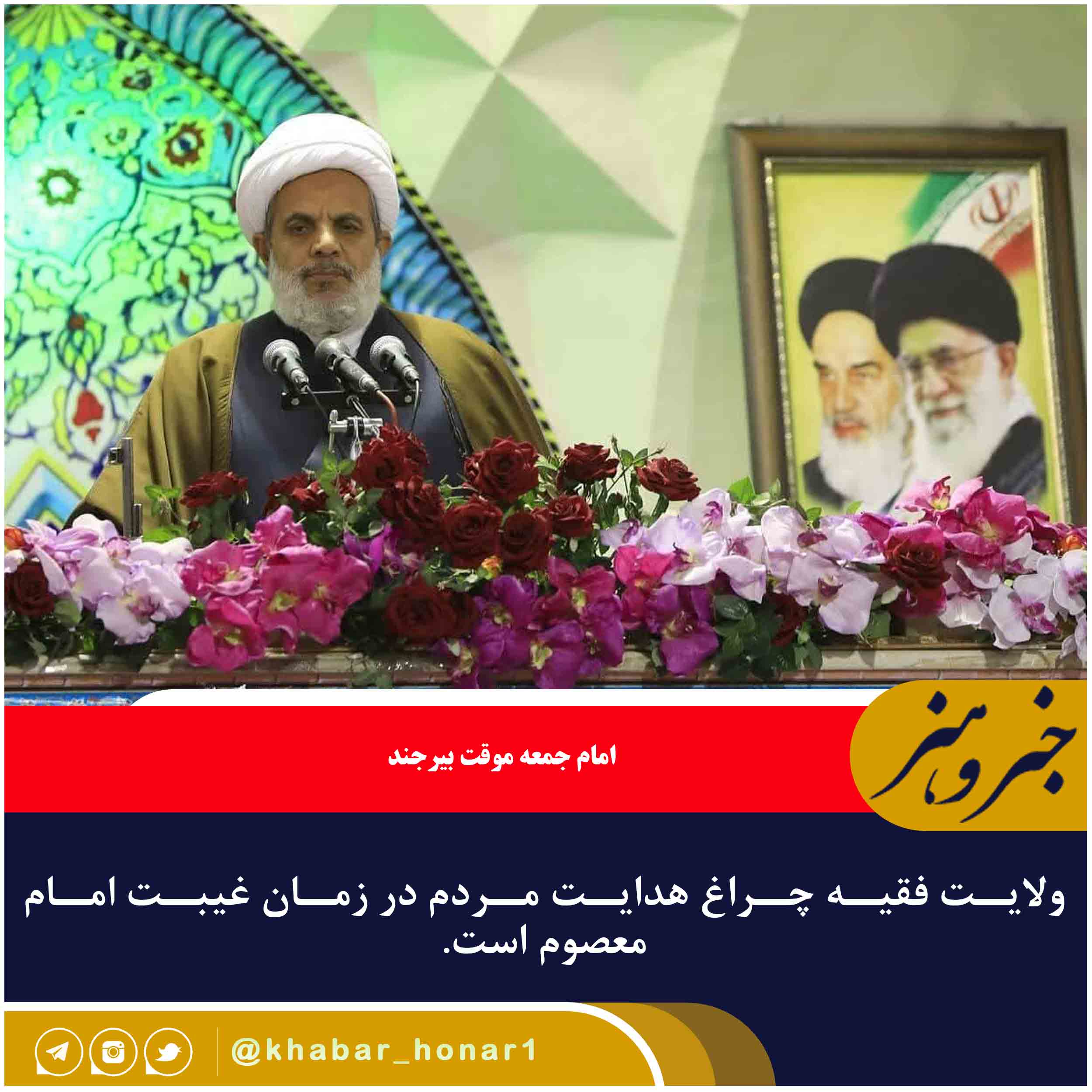 خطیب جمعه بیرجند ادامه داد: علمای دین همواره در طول تاریخ با ارائه تفکر صحیح از دین برای ترویج اسلام تلاش کرده‌اند و ولایت فقیه چراغ هدایت مردم در زمان غیبت امام معصوم است.