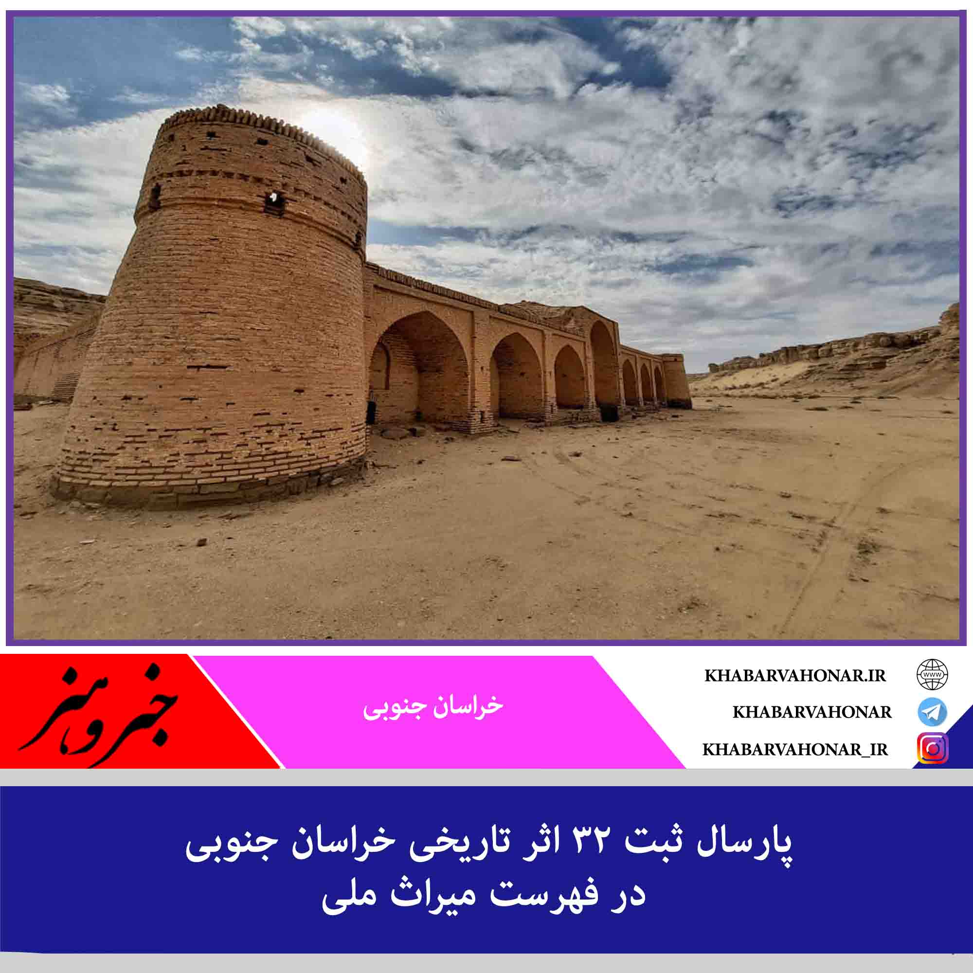 ۳۲ اثر تاریخی، معنوی و طبیعی خراسان جنوبی پارسال در فهرست میراث ملی ثبت شده است.