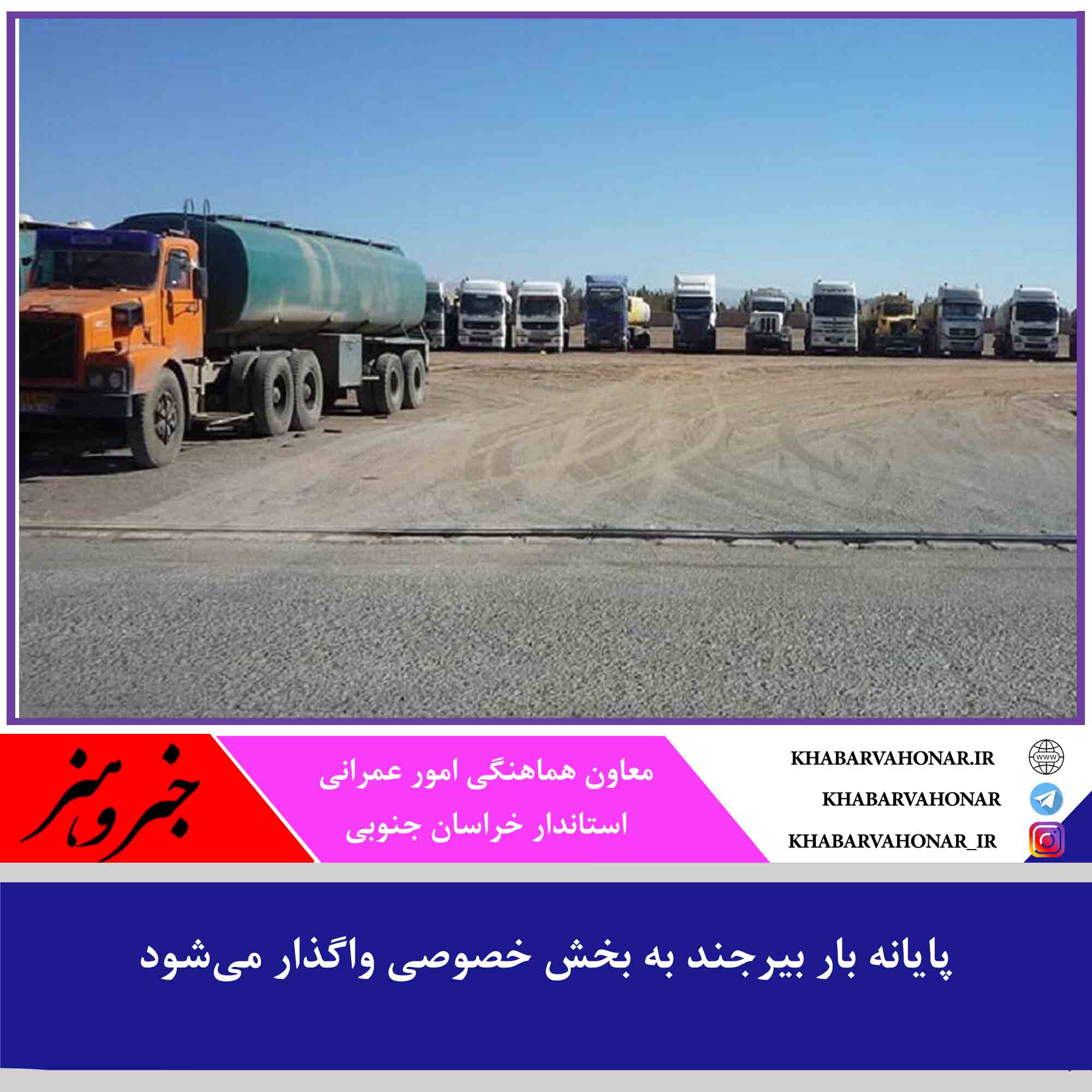 معاون هماهنگی امور عمرانی استاندار خراسان جنوبی گفت: ظرفیتهای قانونی برای واگذاری پایانه بار بیرجند به بخش خصوصی پیشبینی شده است و در حال انجام مکاتبات و پیگیریهای لازم در این زمینه هستیم.